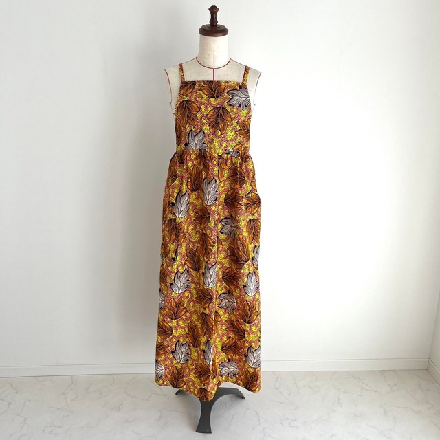 アフリカ布のナチュラルエプロン 色彩豊かで個性的なアフリカ布で作ったエプロンです。 ナチュラルなシルエットで ほんわか可愛い雰囲気に仕上げました。 着たまま外に出掛けたくなるようなデザインで おうち時間も楽しく過ごせる素敵なエプロンです。 お料理教室やパン教室、 ホームパーティ、バザーなど エプロンで人前に出るシーンなどにも良いですね。 洗濯しやすいように肩紐を短く スッキリとしたデザインにしました! 写真は、身長160㎝の9号トルソーを使用しています。 身長160㎝の方が着用でロング丈になります。 身長155㎝くらいなら5㎝カット 身長150㎝くらいなら10㎝カットをオススメしています。※カットは無料 ・仕様・ 大きめポケットが2つ付いています。 肩紐は後ろで結び目を変えて調節して頂けます。 (約)Sサイズ〜2Lサイズ辺りまでかなり幅広く対応しておりますので、 プレゼントなどにもオススメです! ・サイズ・縦全長112cm/横幅88 フリーサイズ ・素材・ cotton100% ・お洗濯に関して・ ネットに入れて洗濯機で洗って頂けます。 濡れた状態が一番色落ちしやすいので 洗濯後はすぐに干してください(重要) 色落ちの可能性がありますので 他のものと分けて洗濯することをお勧めします。 ・注意点・ アフリカ布は日本ほど高い商品基準で作られていない為どの布にも柄のズレ、色抜けや織り傷などがあります。 これらもアフリカ布の特徴ですので 風合いとしてご理解頂きますようお願い致します。