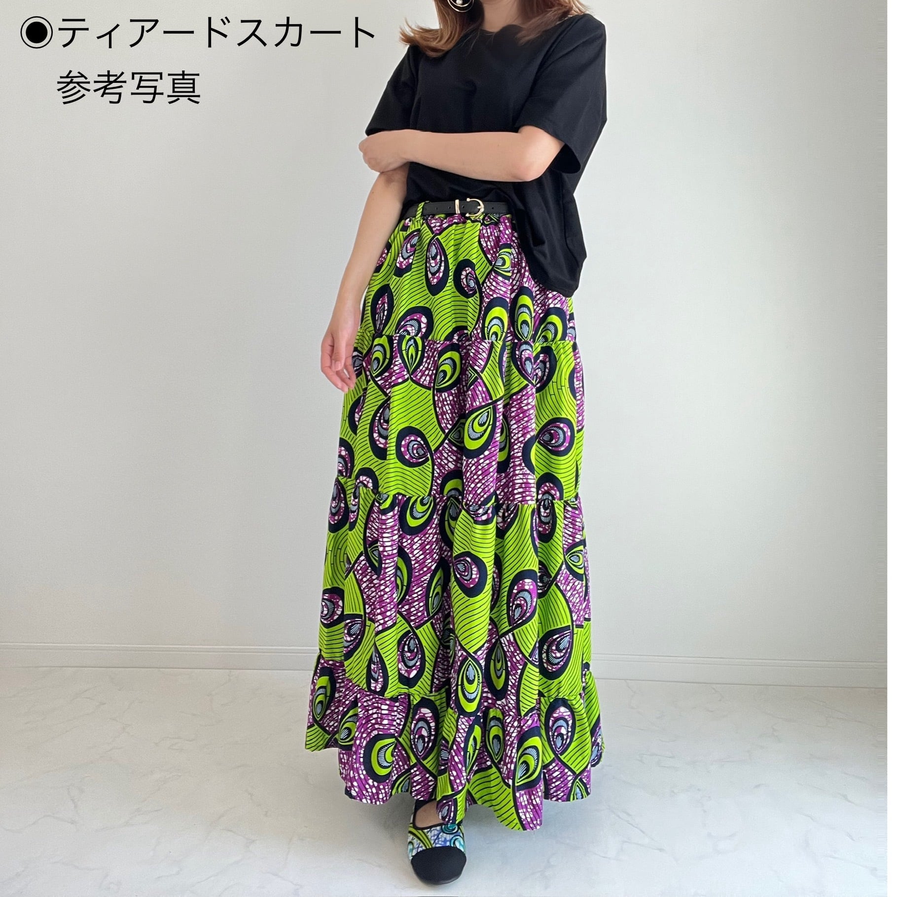 アフリカ布のティアードスカートは