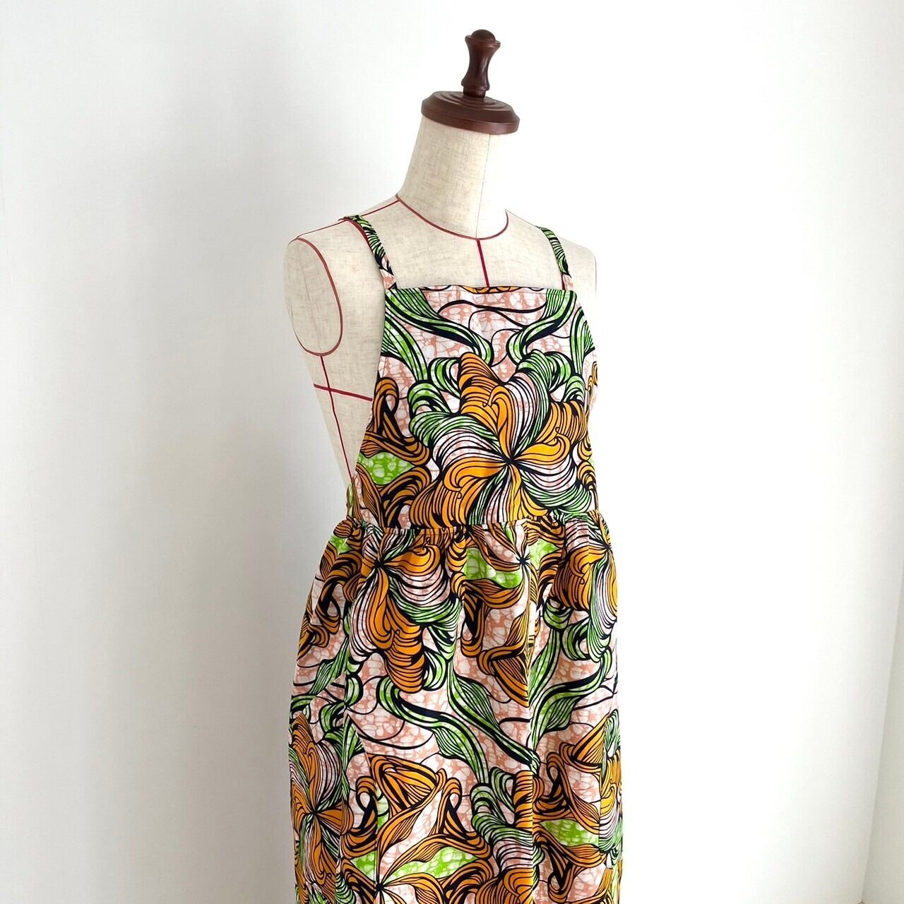 色彩豊かで個性的なアフリカ布で作ったエプロンです。