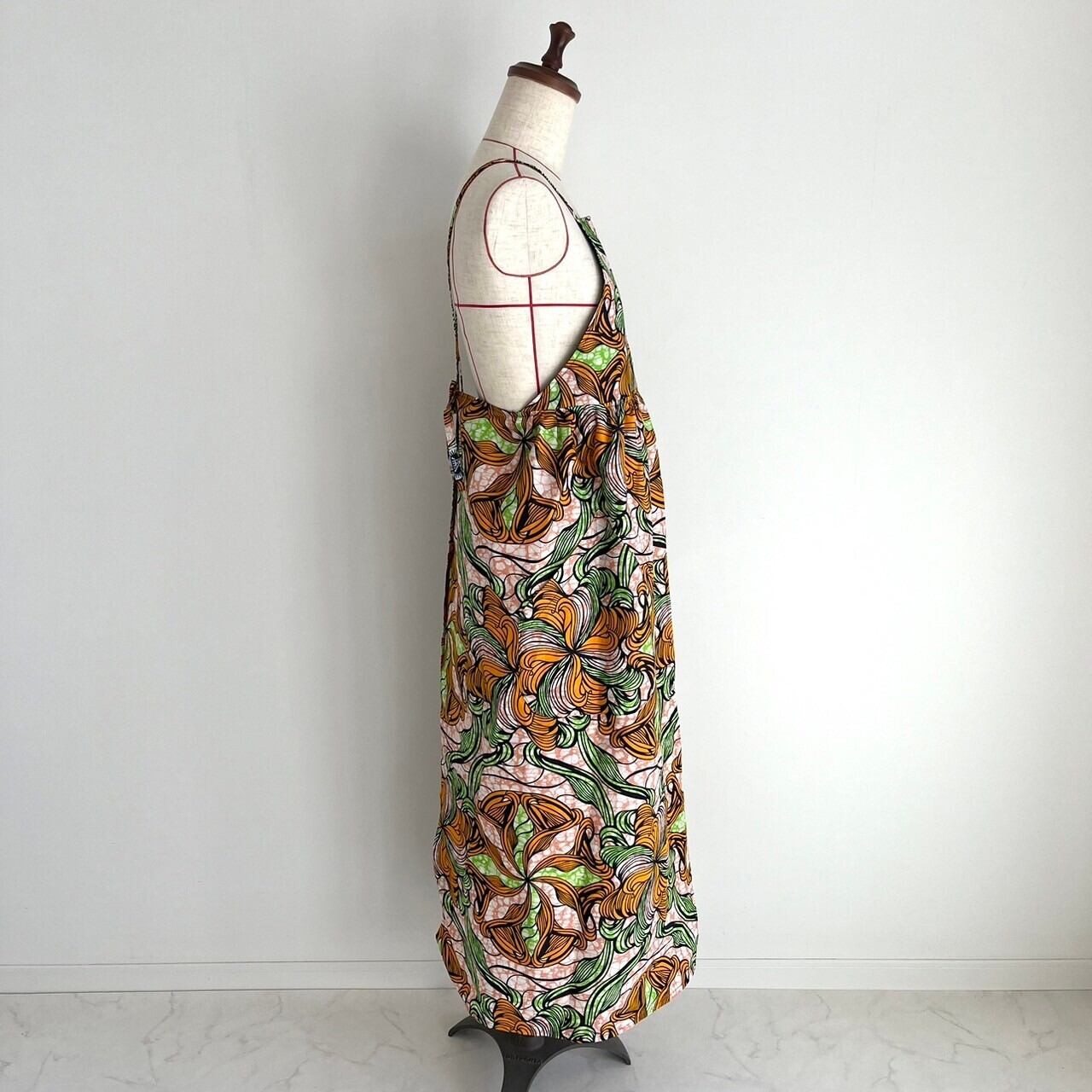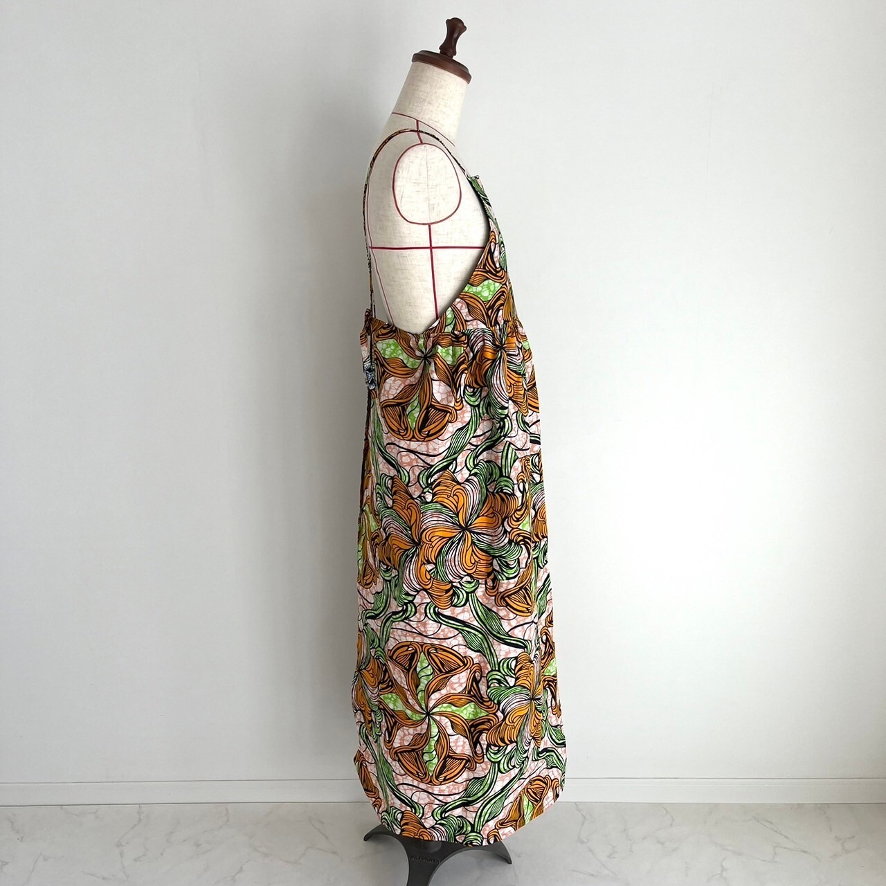 アフリカ布のナチュラルエプロン エレガントフラワー/薄ピンク×オレンジ