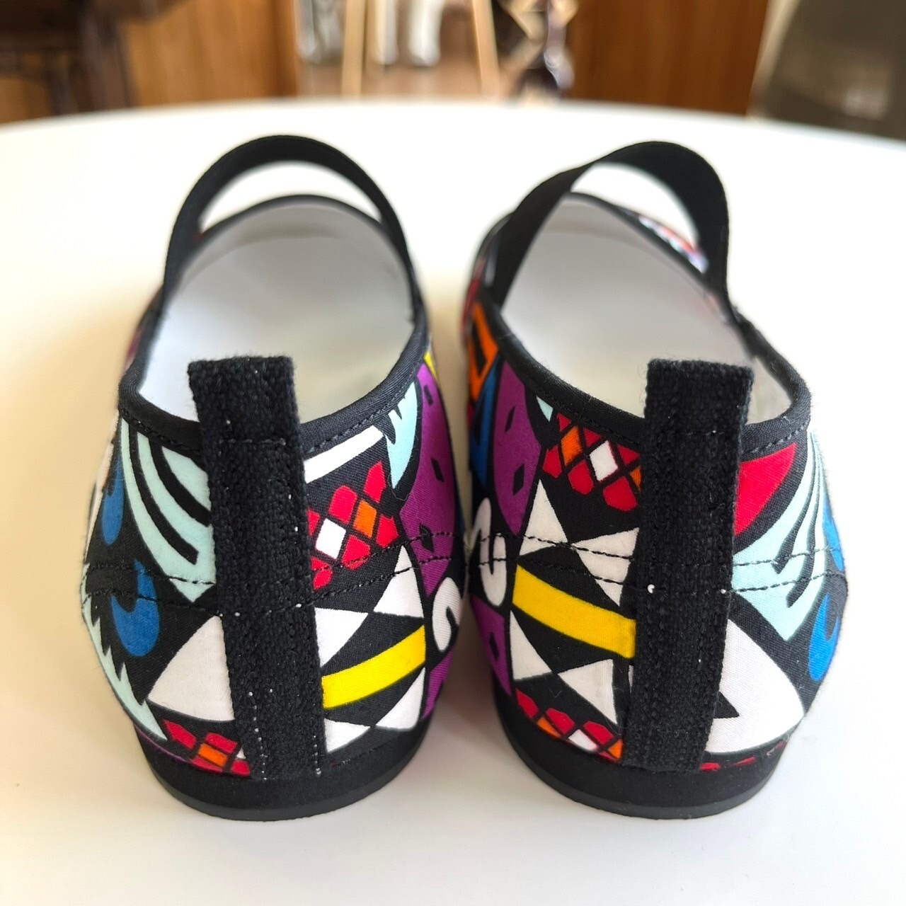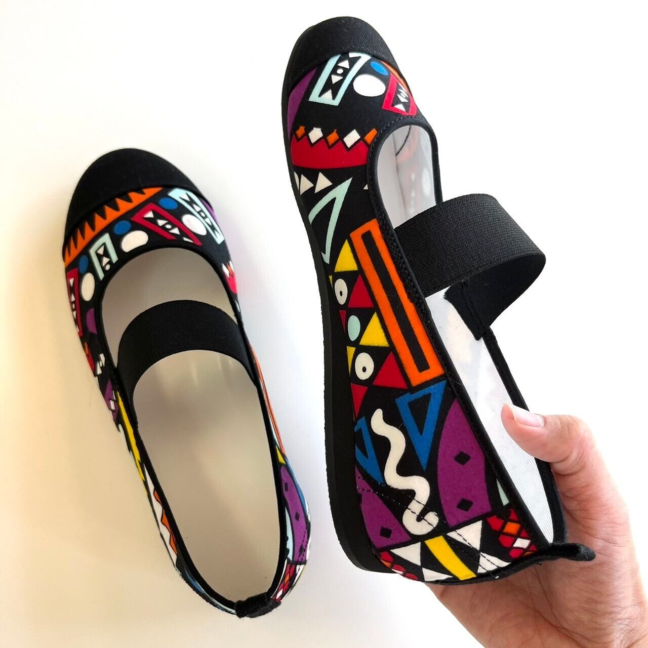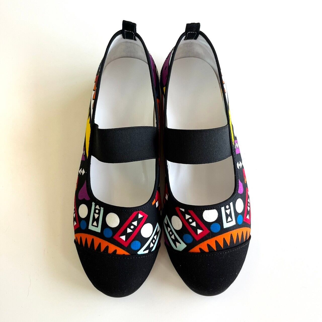 日本の文化と言っても過言ではない上履きとアフリカ布のコラボレーションで新しいスタイルのバレエシューズに仕上がりました。