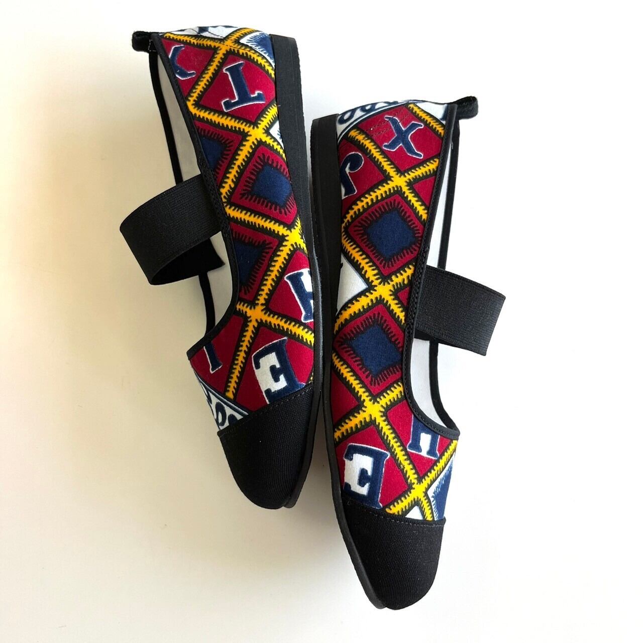 日本の文化と言っても過言ではない上履きとアフリカ布のコラボレーションで新しいスタイルのバレエシューズに仕上がりました。