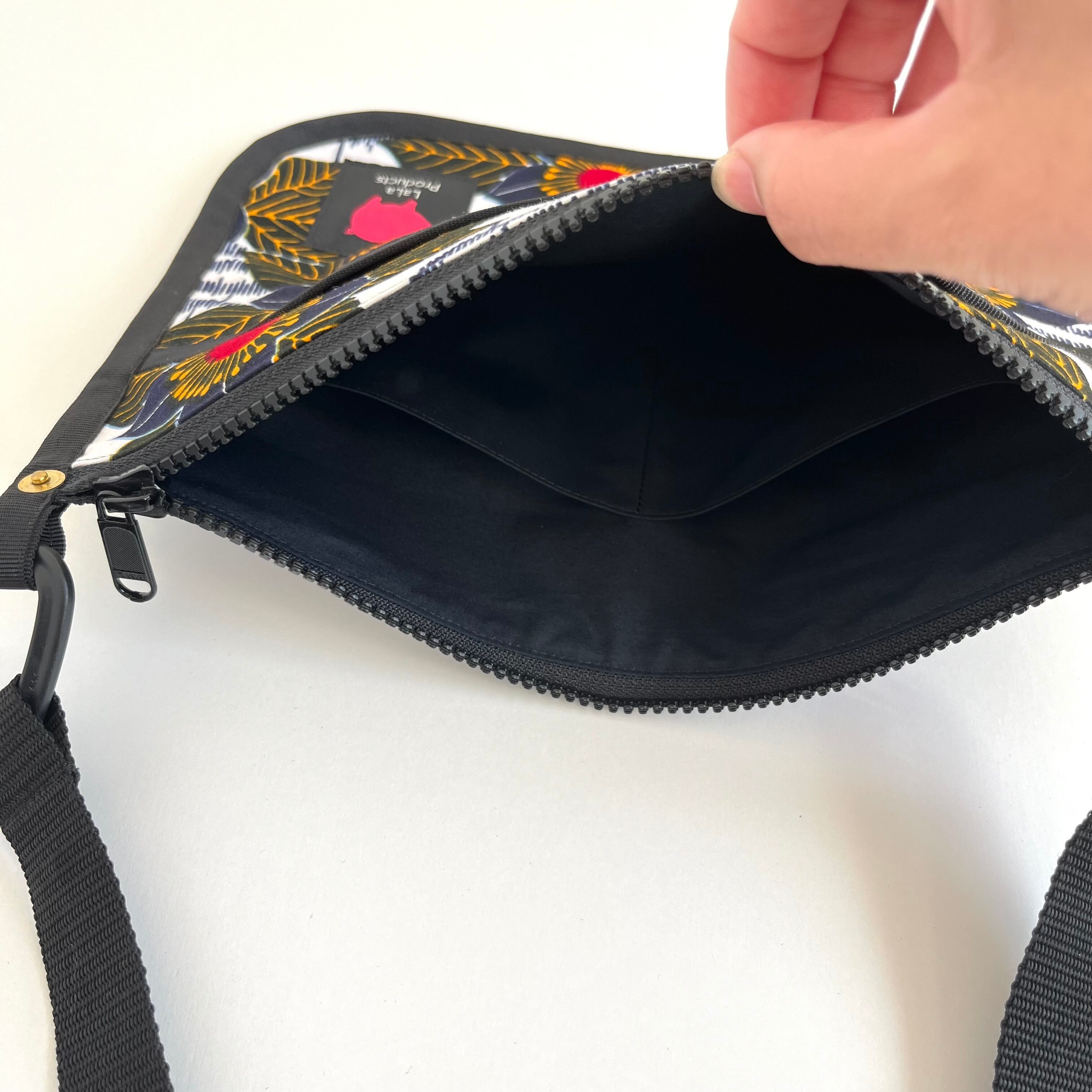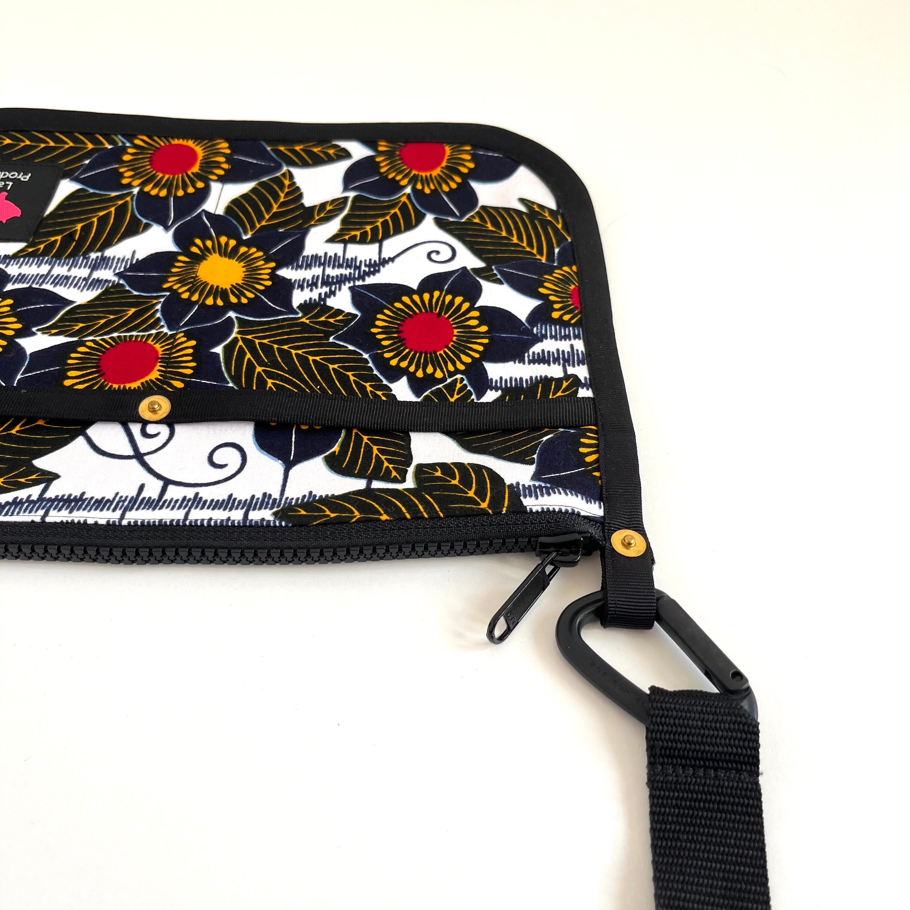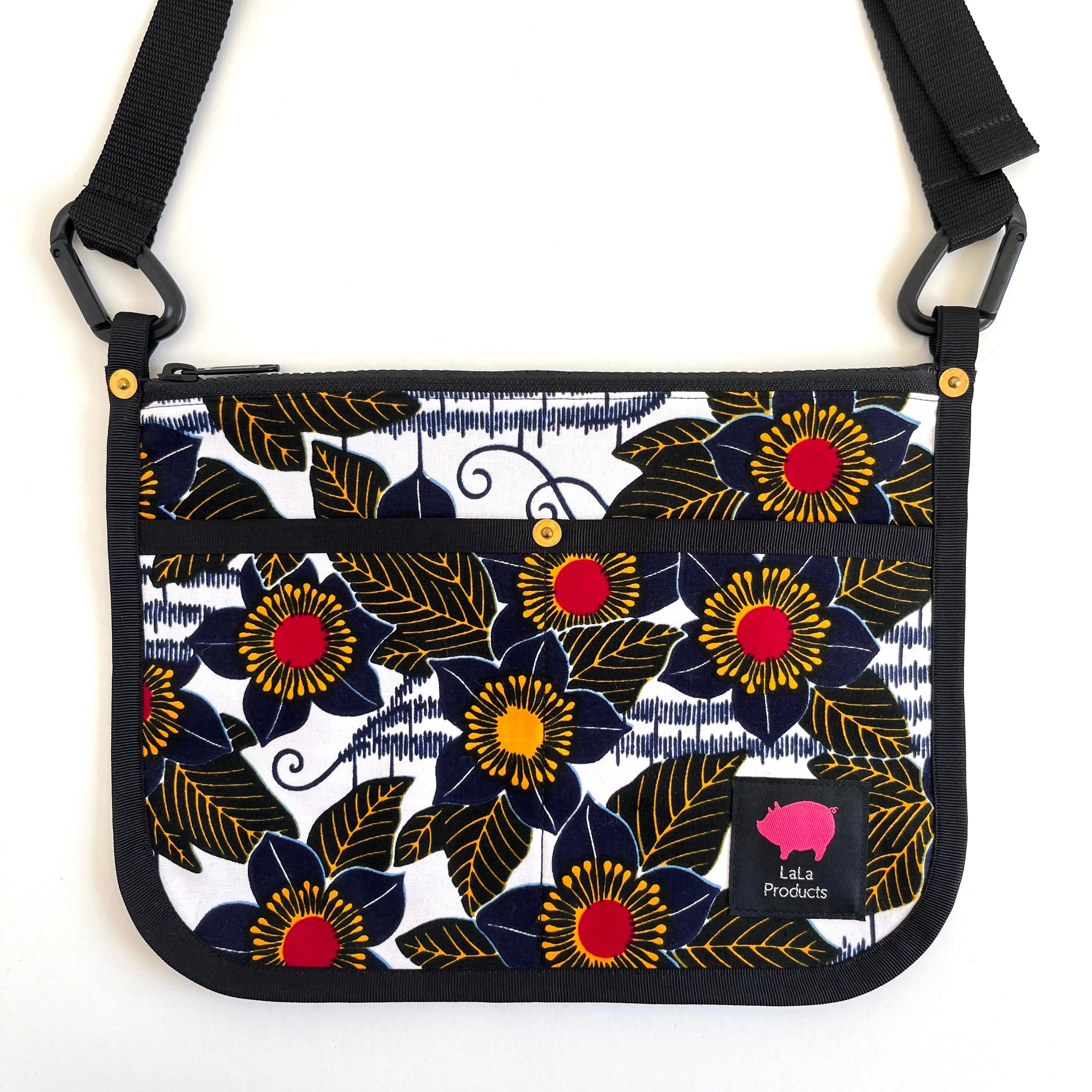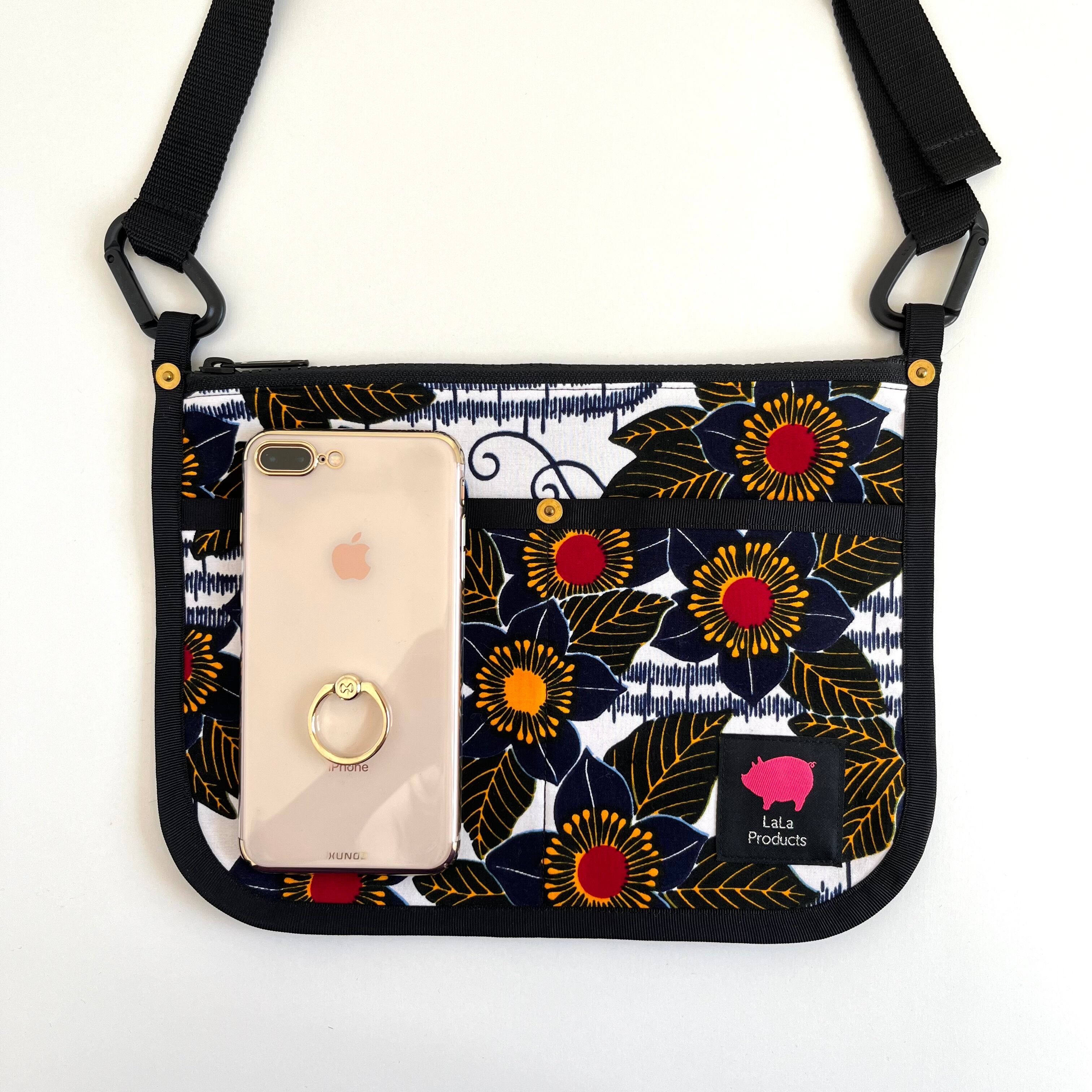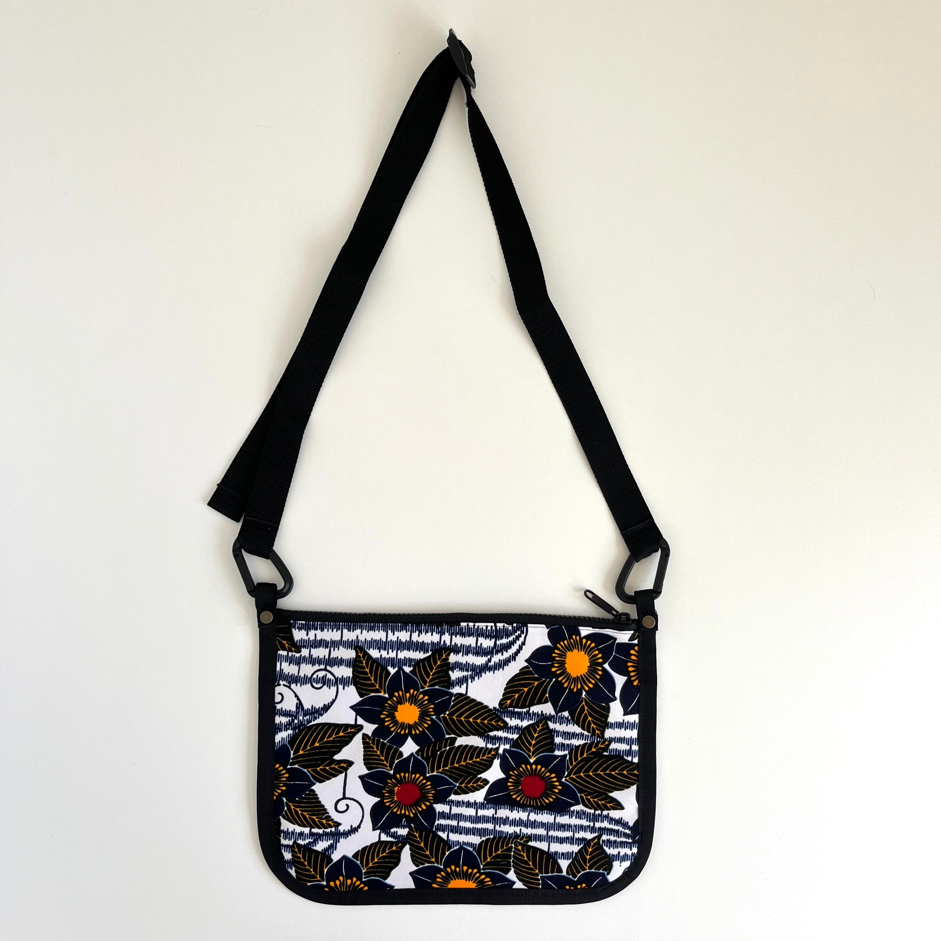 アフリカ布 サコッシュ 和風フラワー/ネイビー×ホワイト