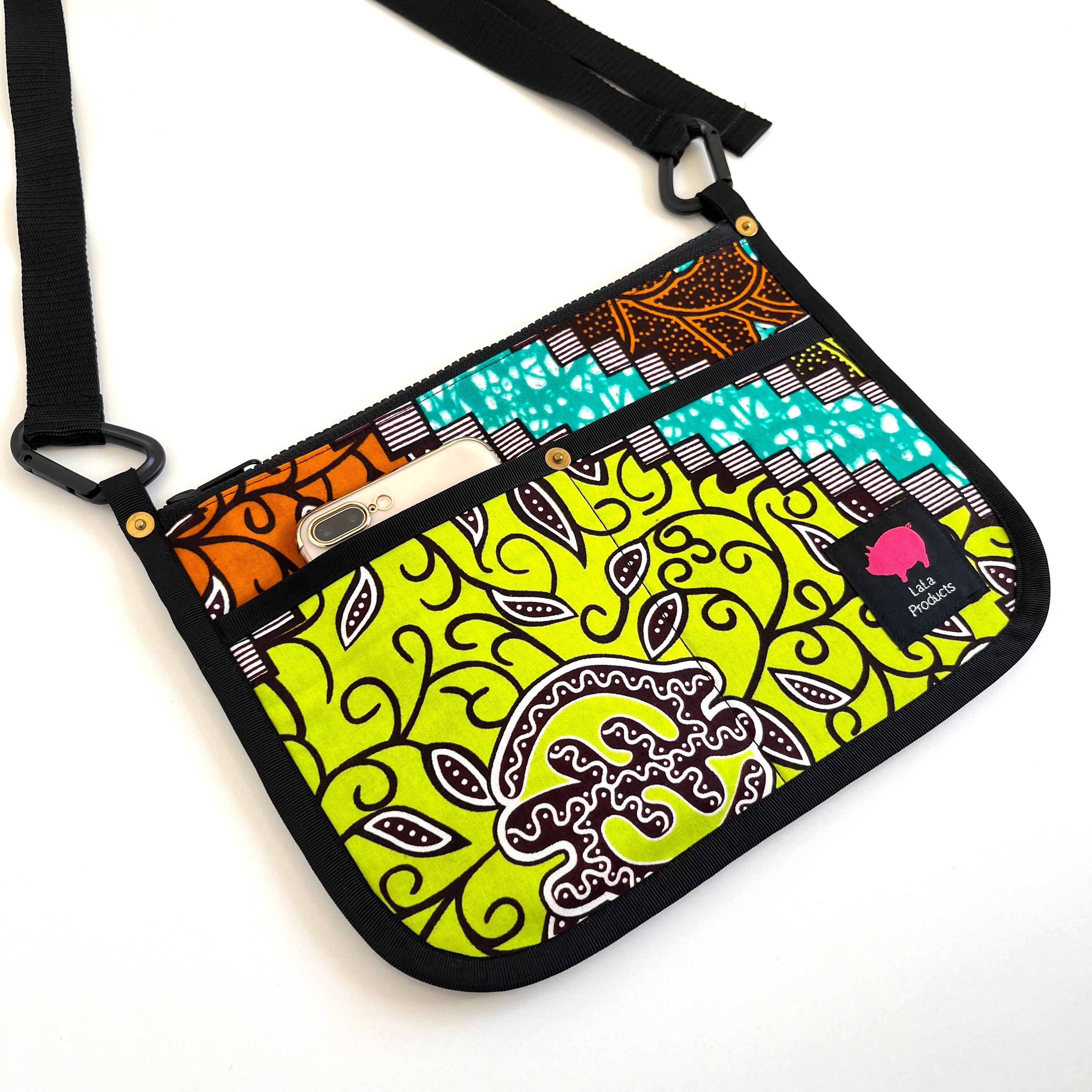 アフリカ布 サコッシュ アラベスク/ライムグリーン
