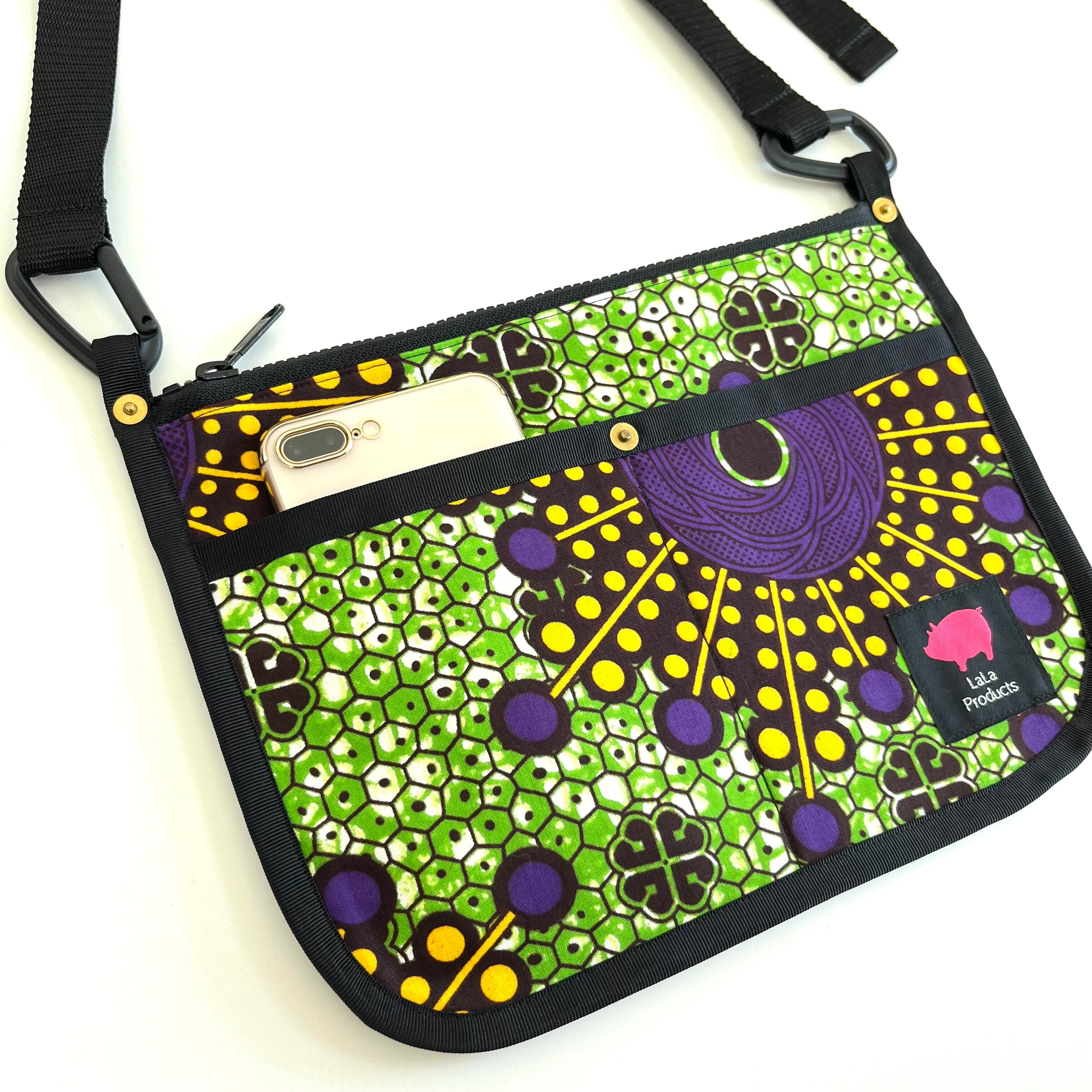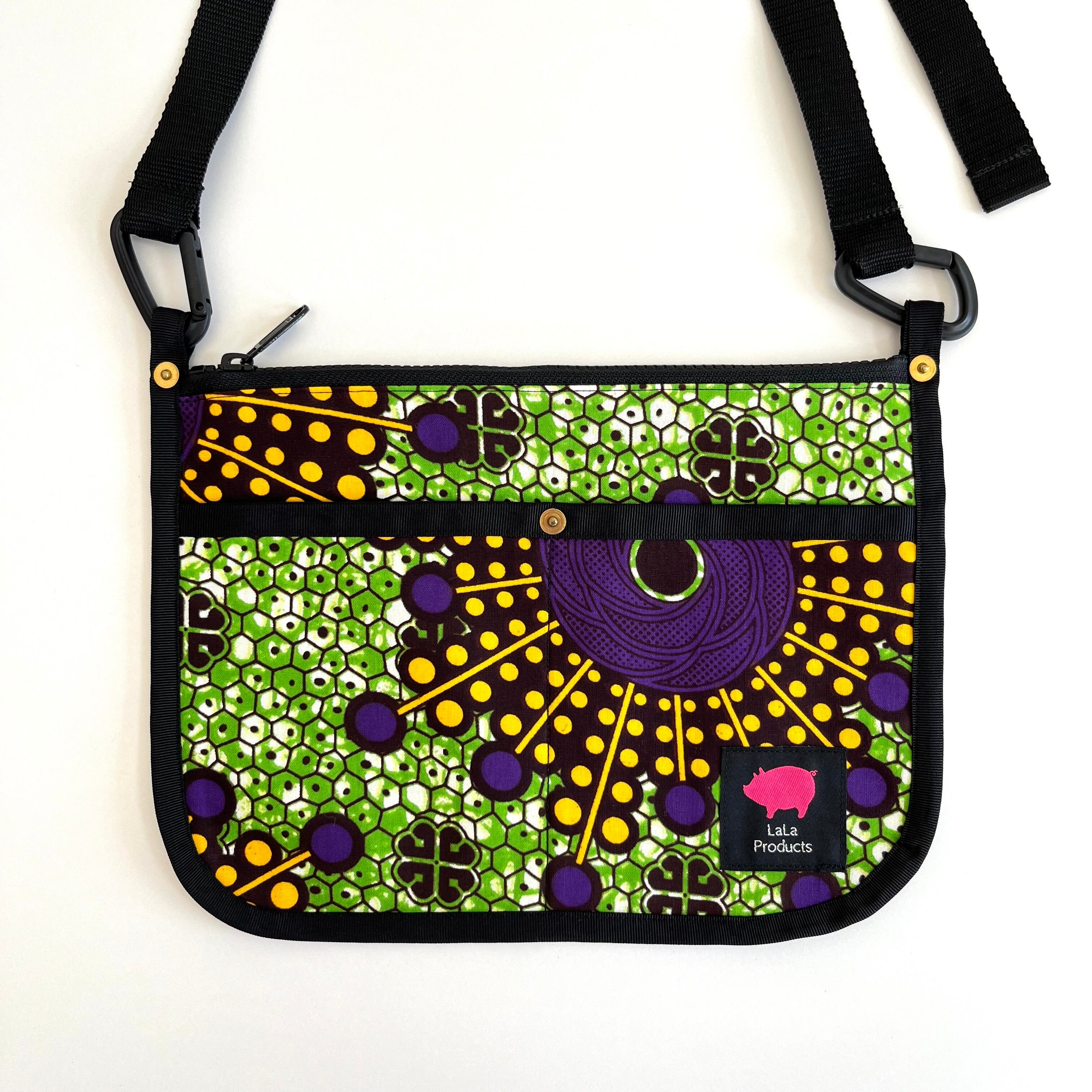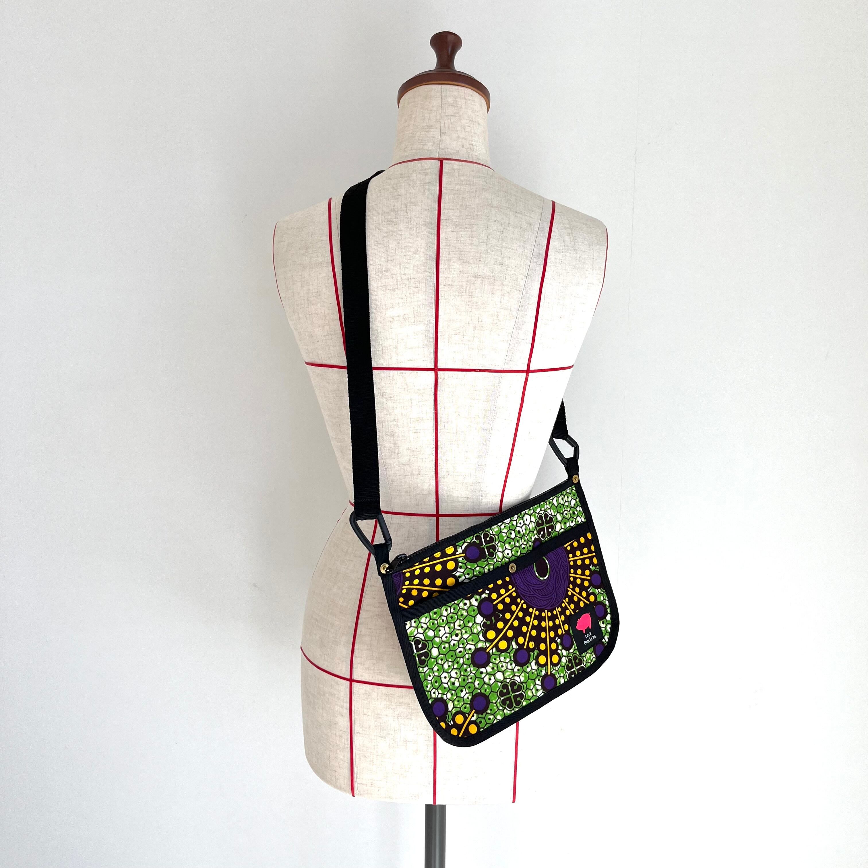 アフリカ布 サコッシュ グリーンセル/パープル×イエロー