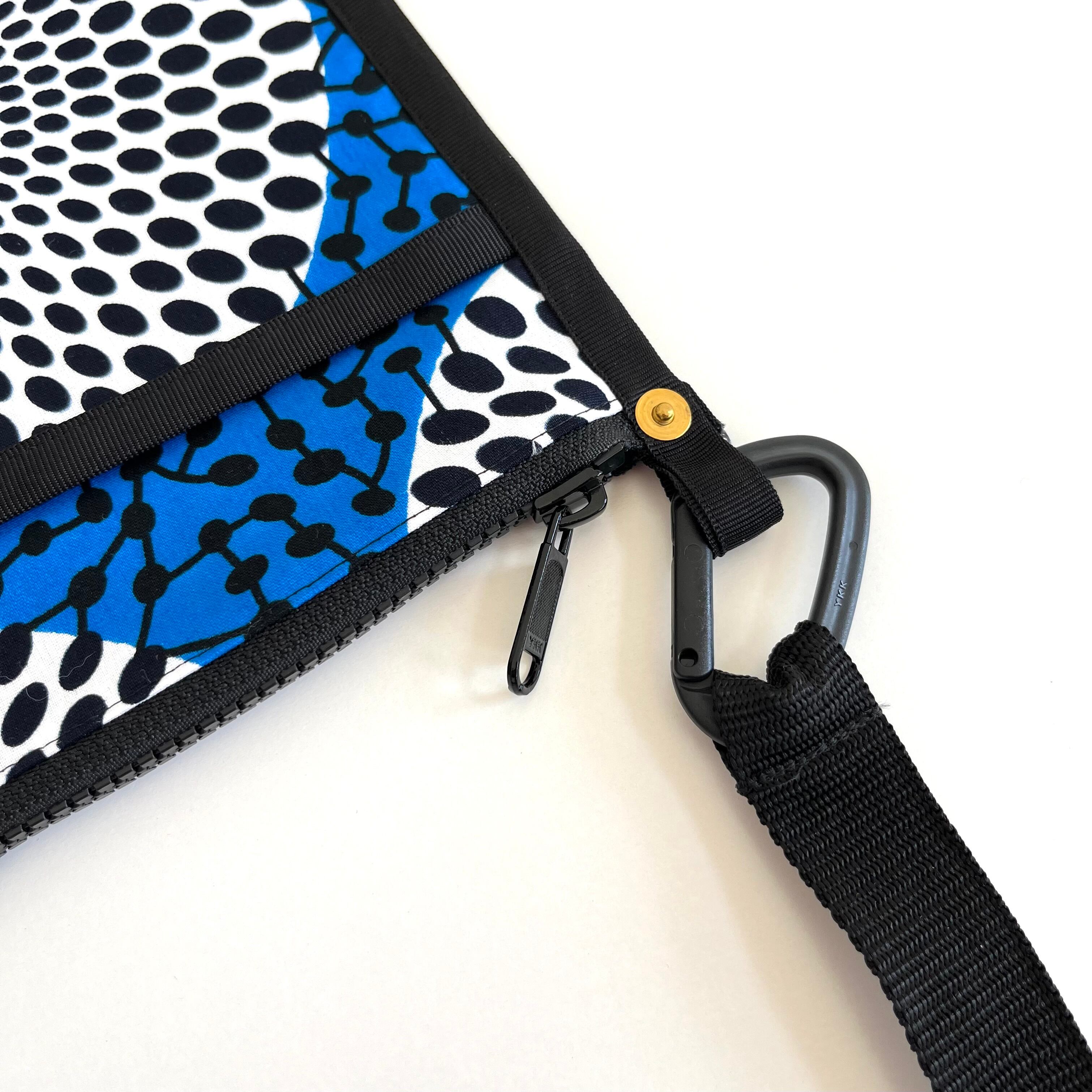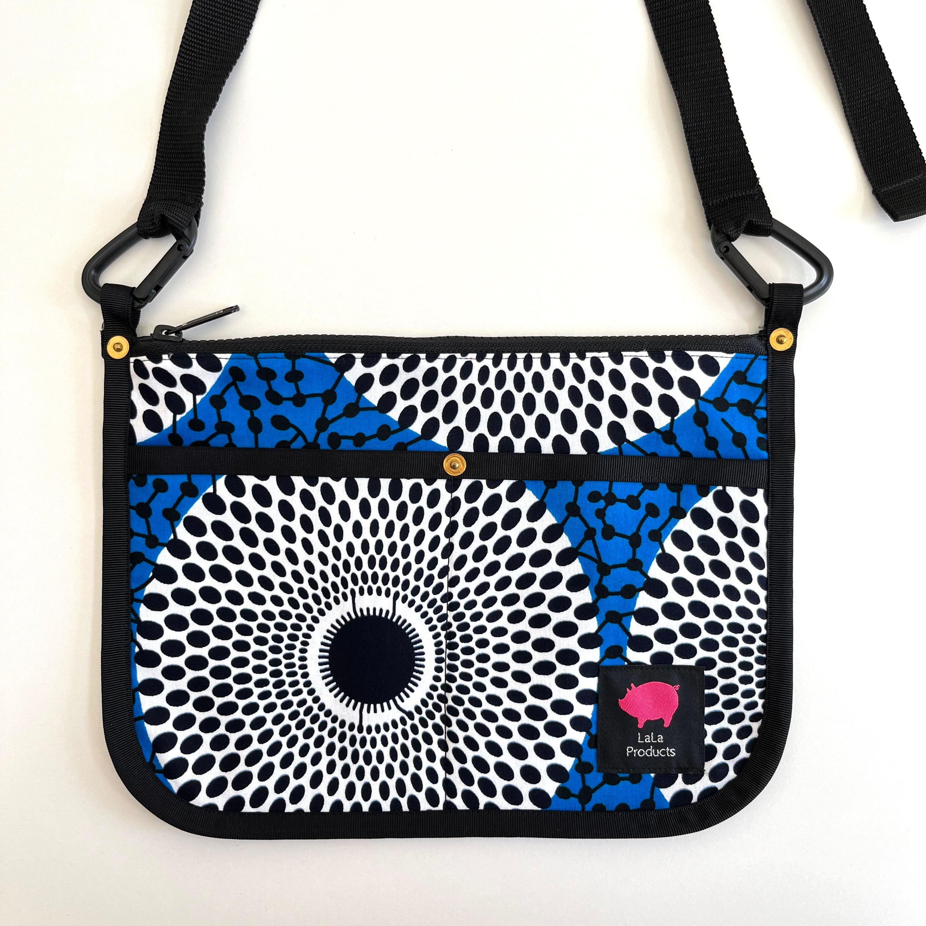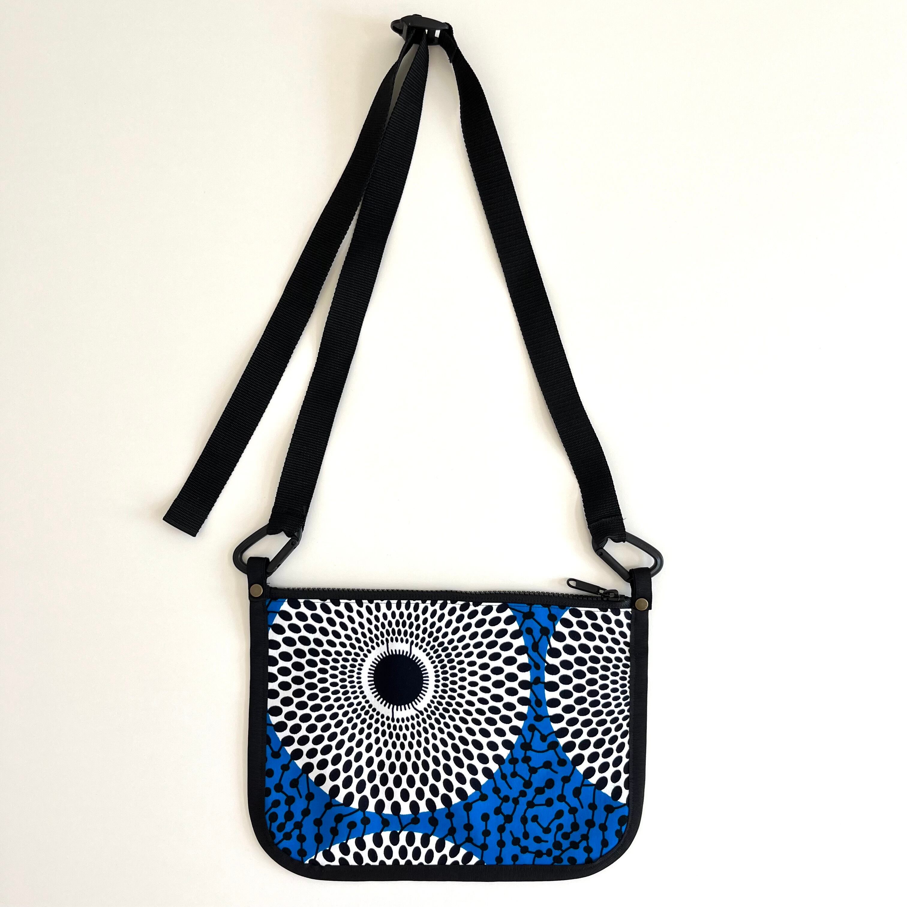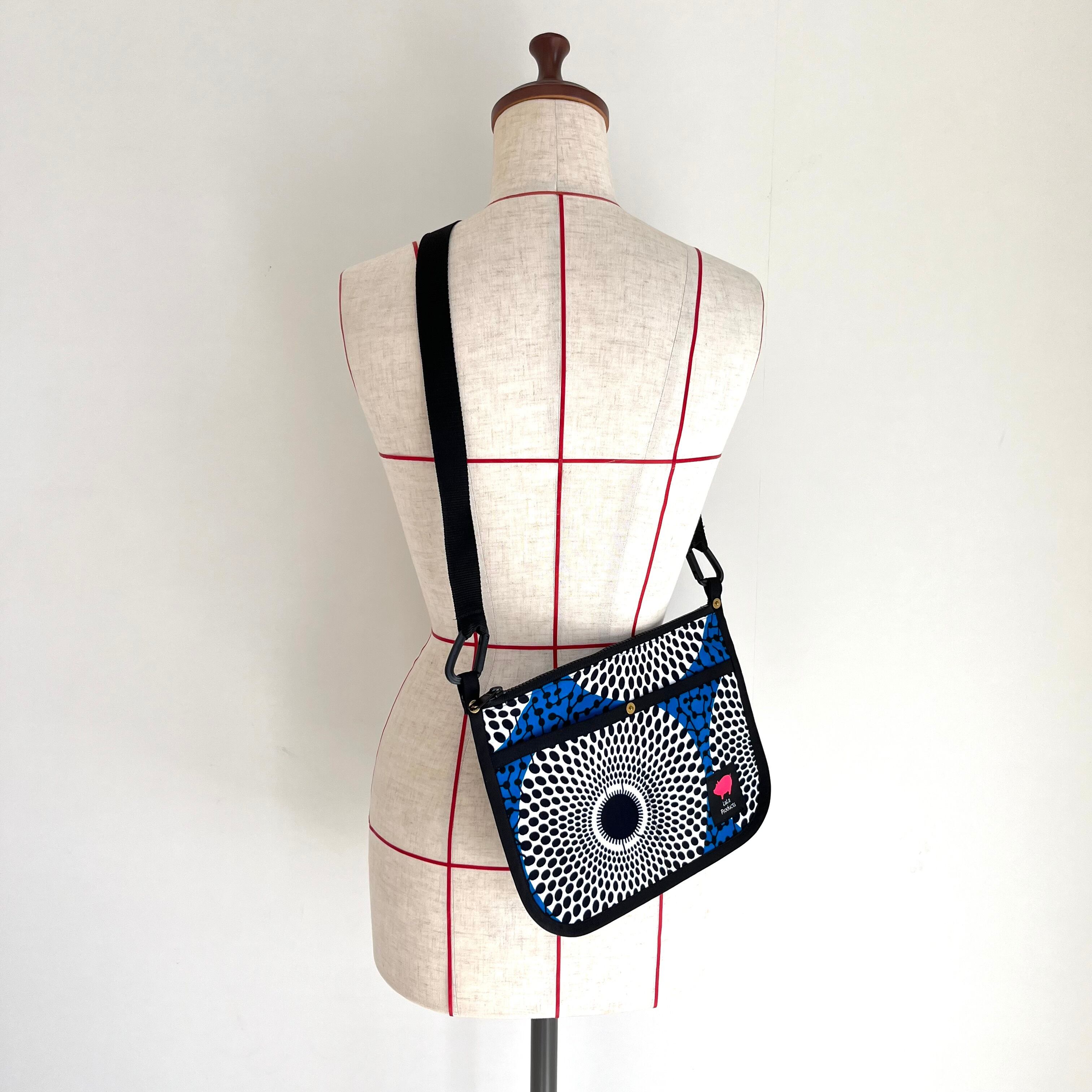 アフリカ布 サコッシュ 水紋/ブルー×ホワイト