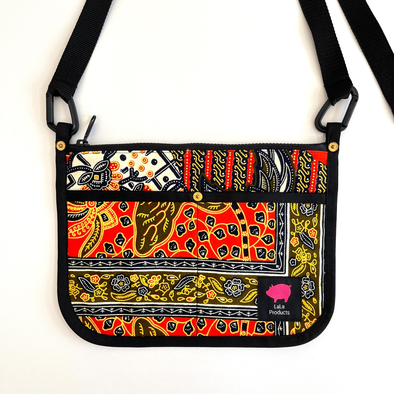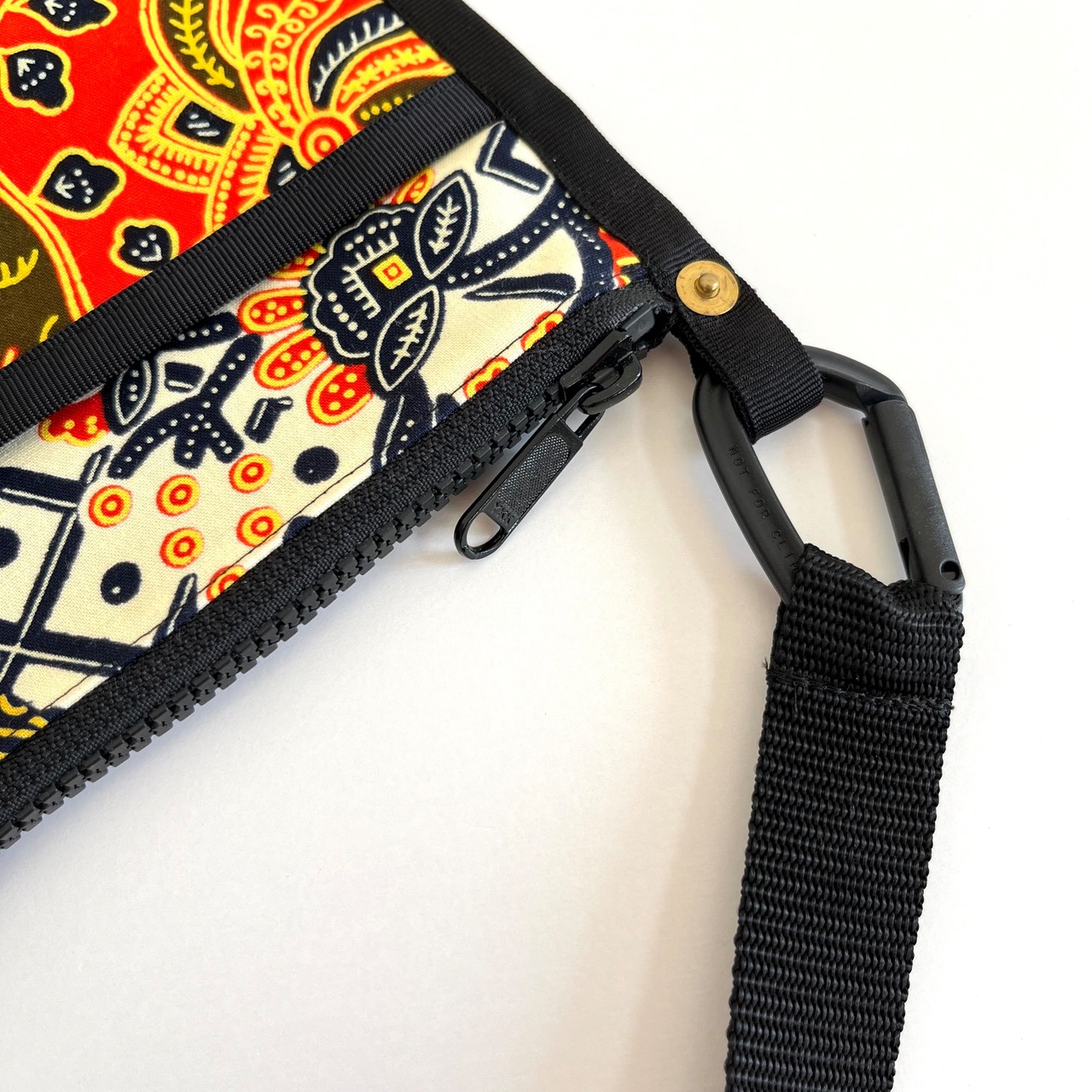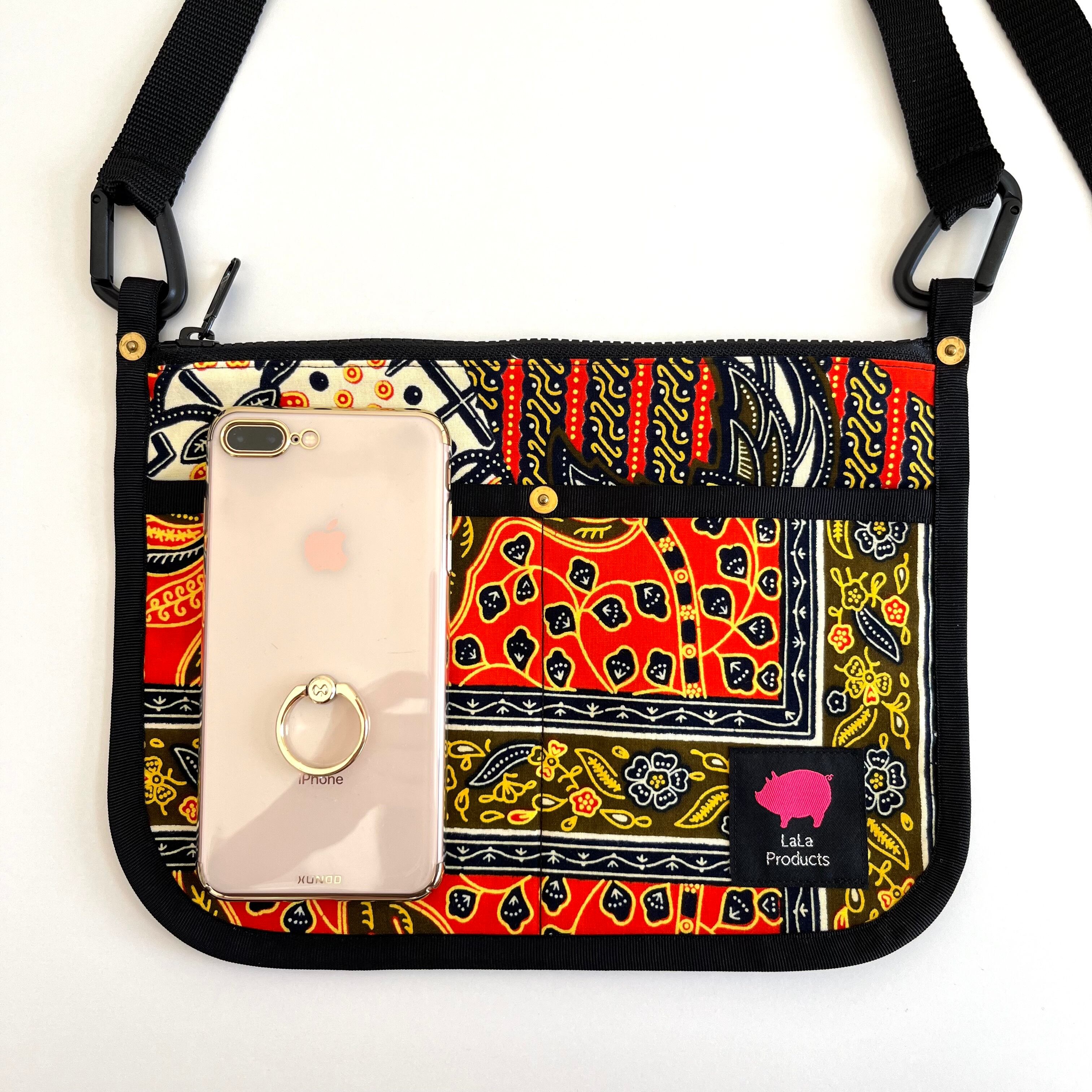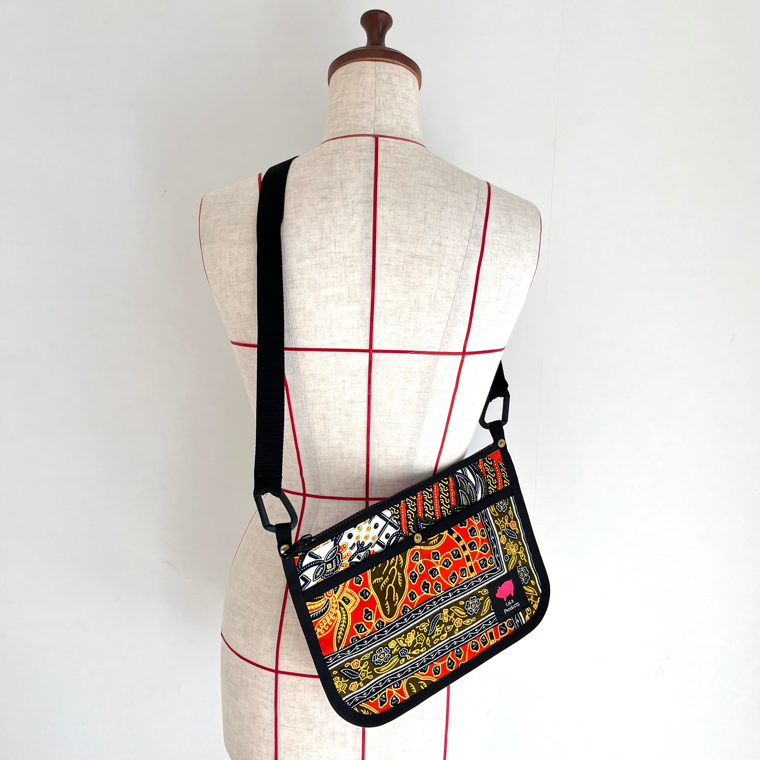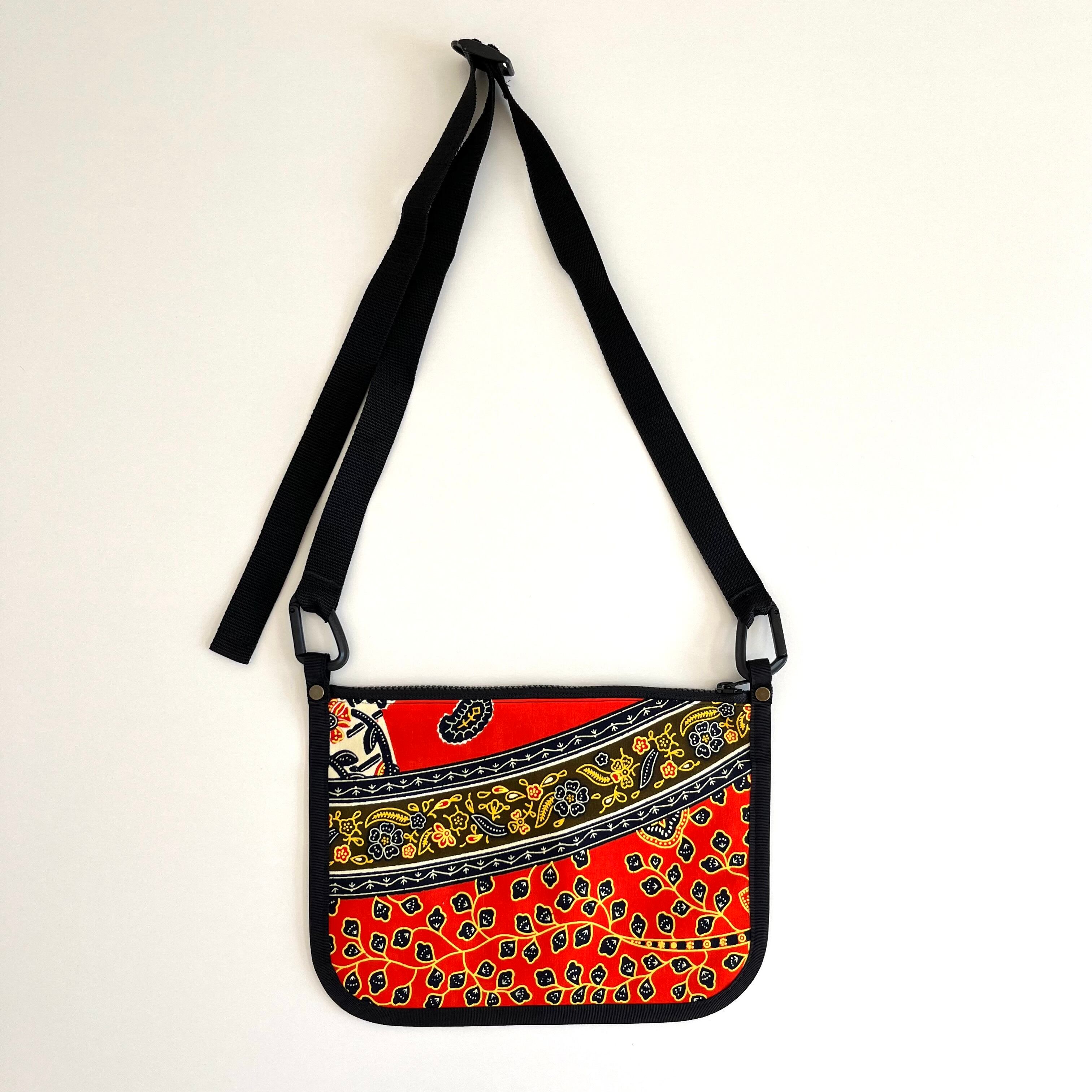 アフリカ布 サコッシュ ボタニカルバティック/オレンジ系