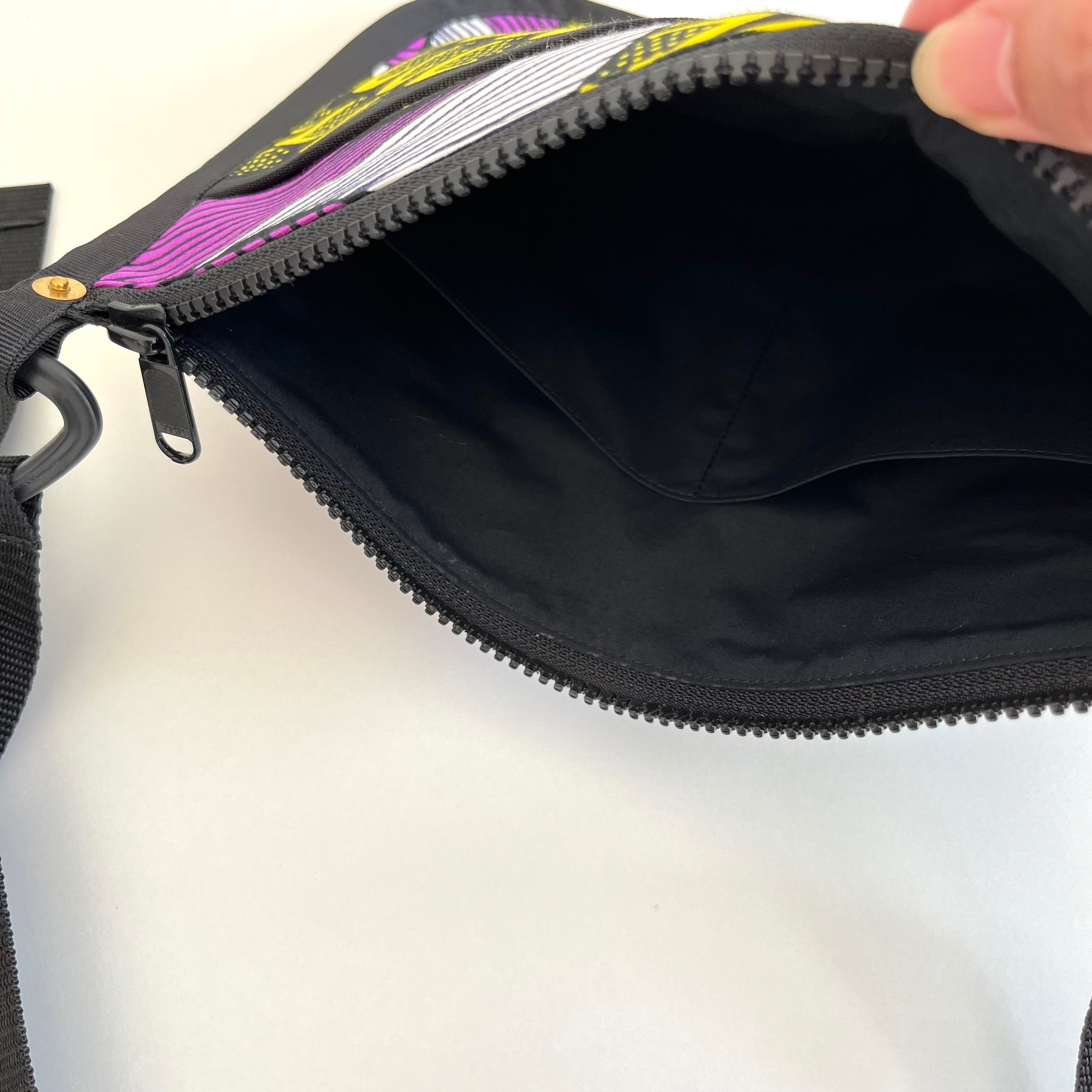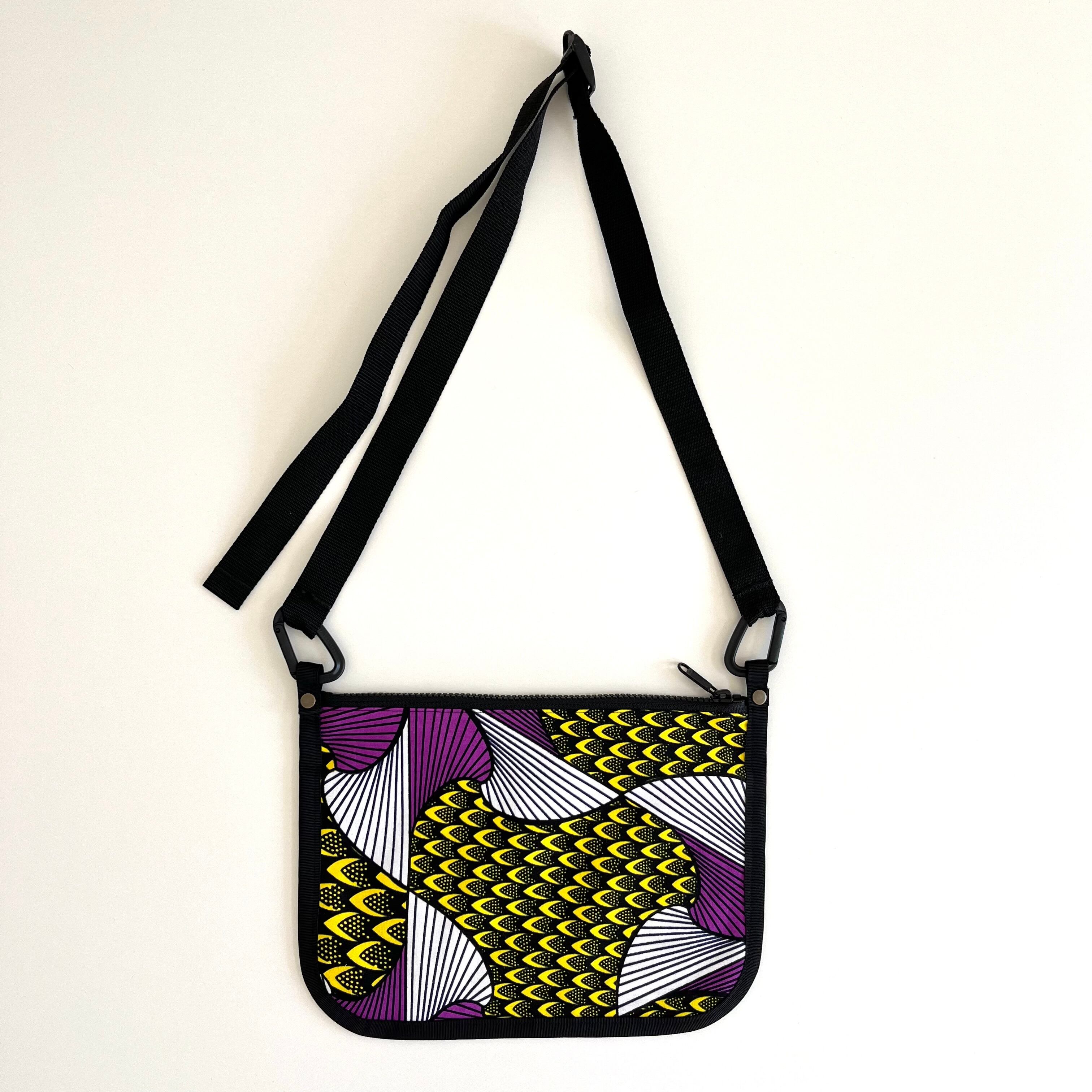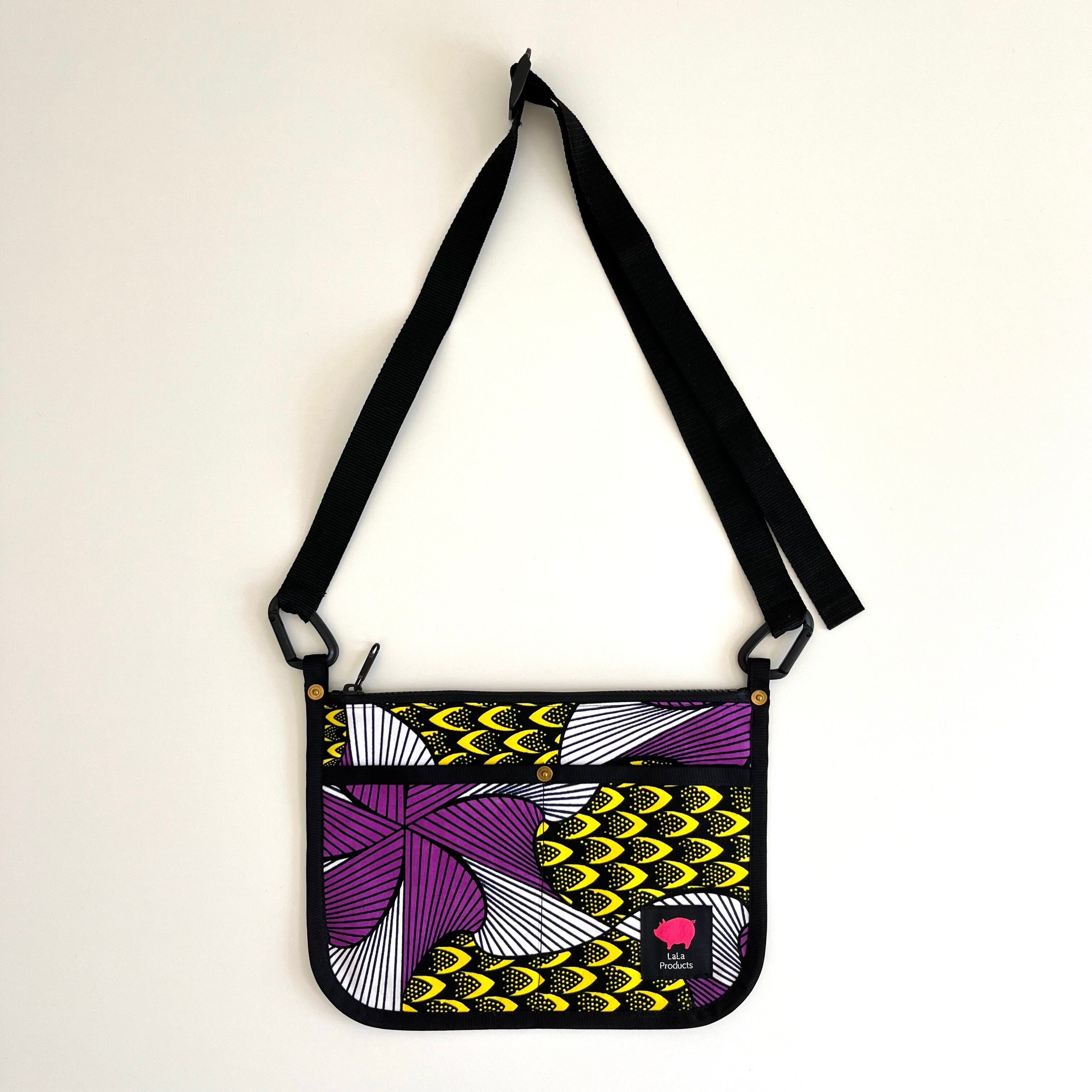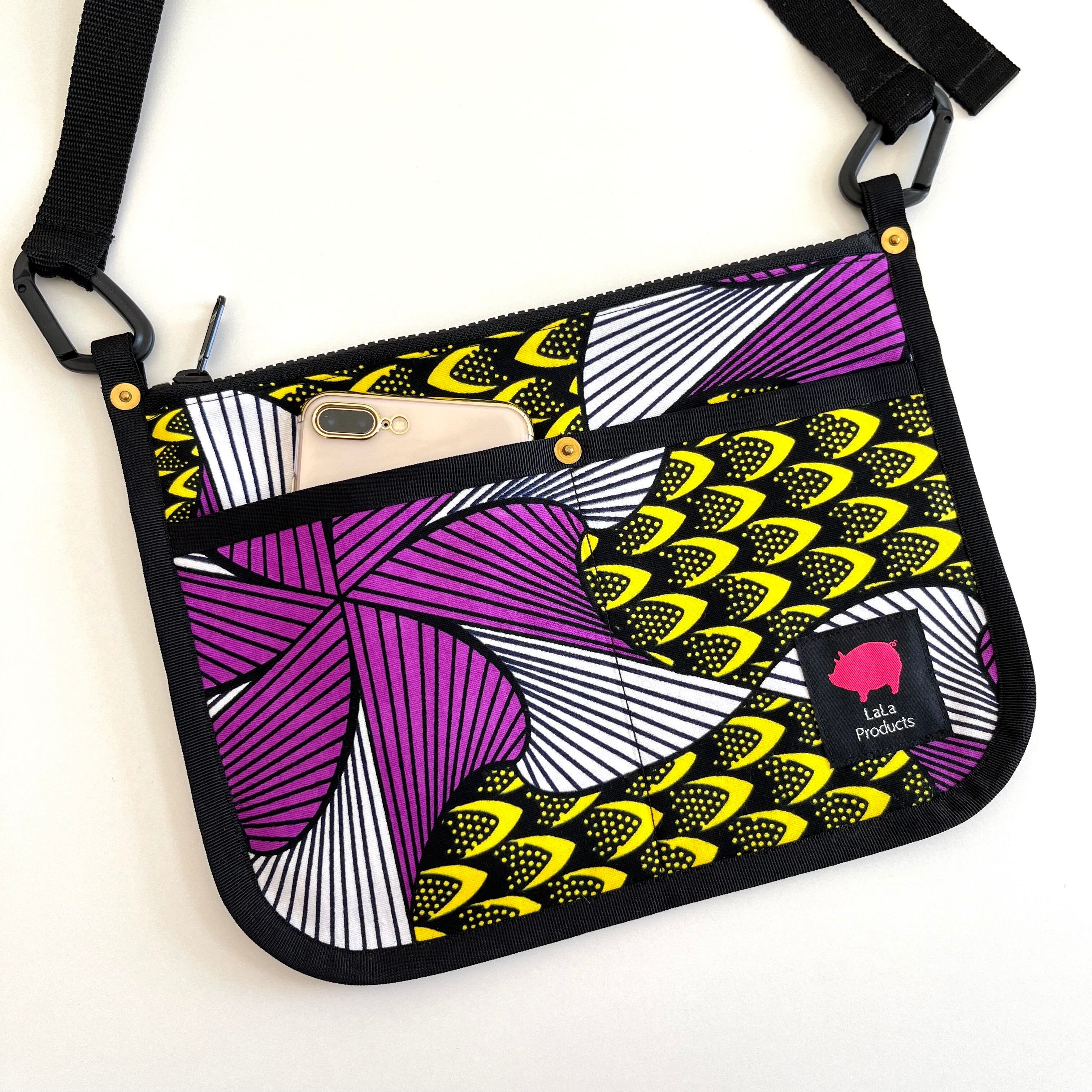 アフリカ布 サコッシュ 風車とウロコ/パープル×イエロー