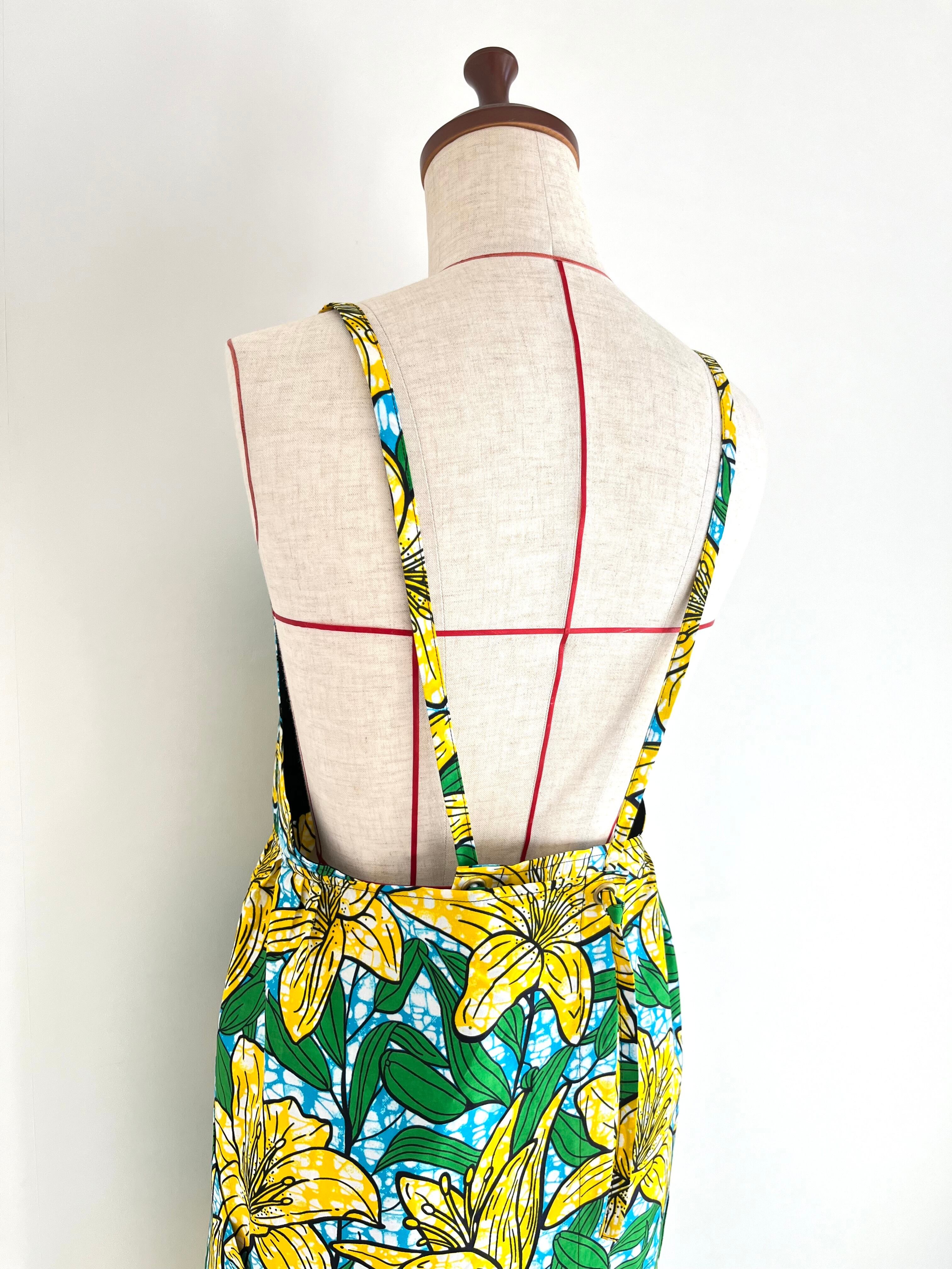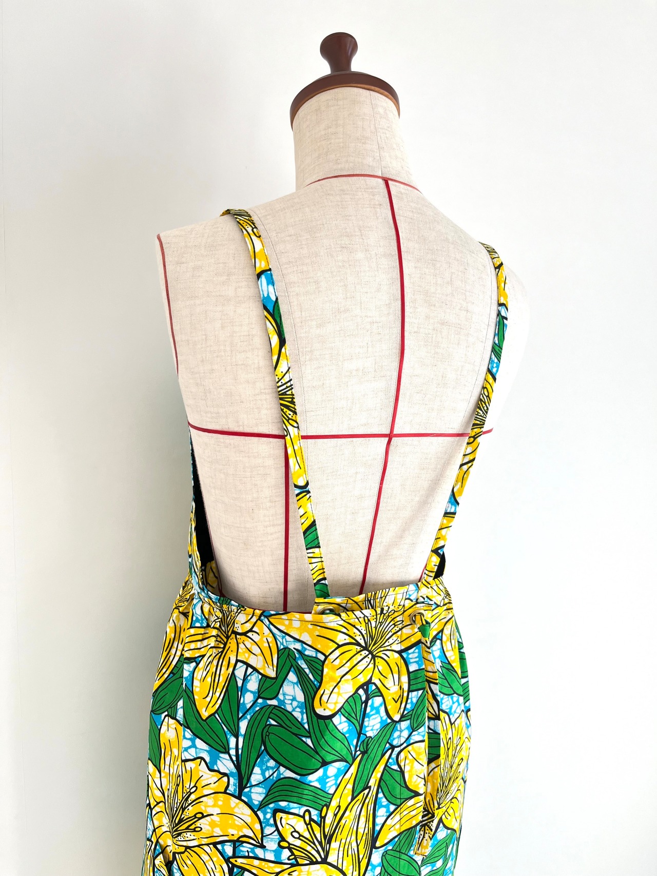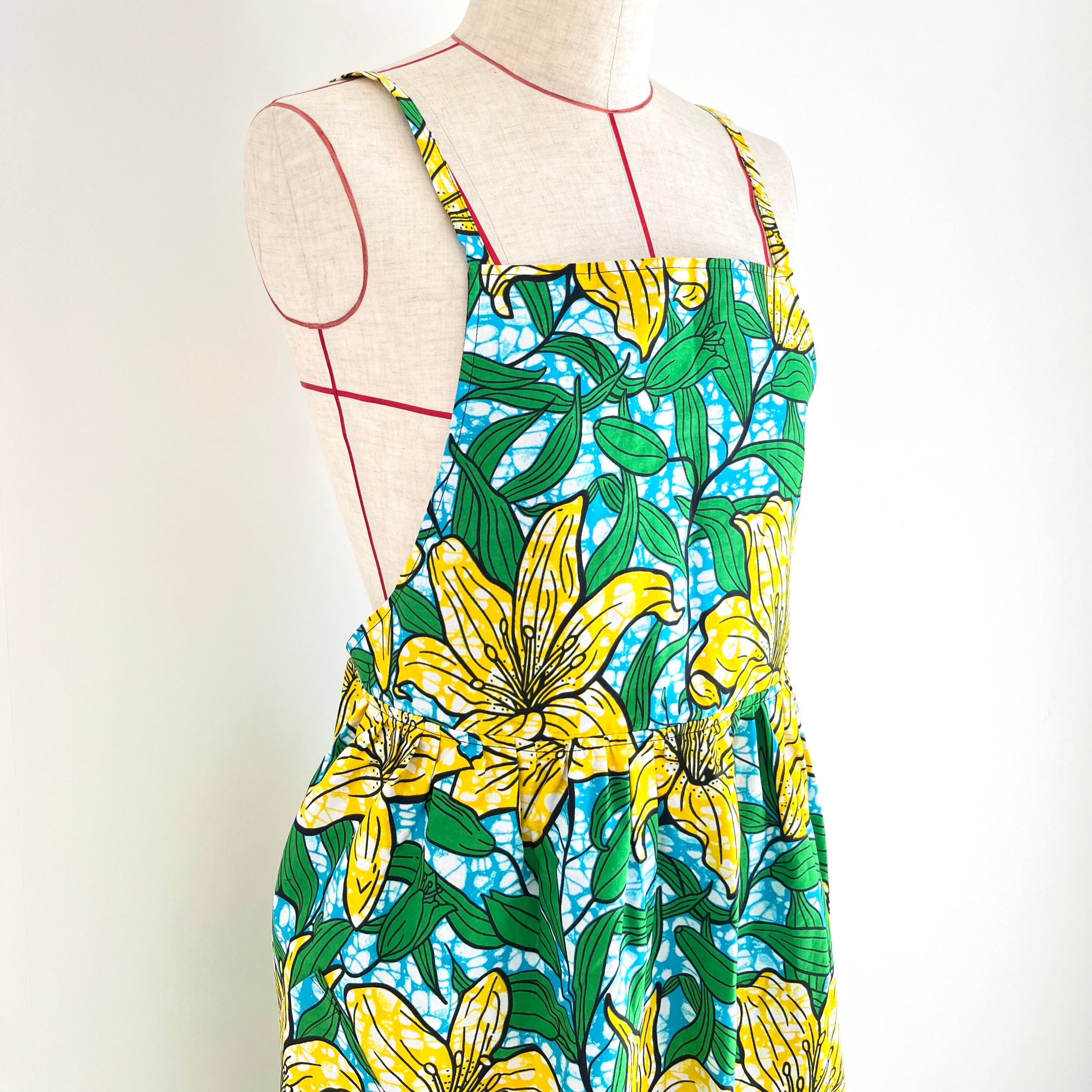 色彩豊かで個性的なアフリカ布で作ったエプロンです。