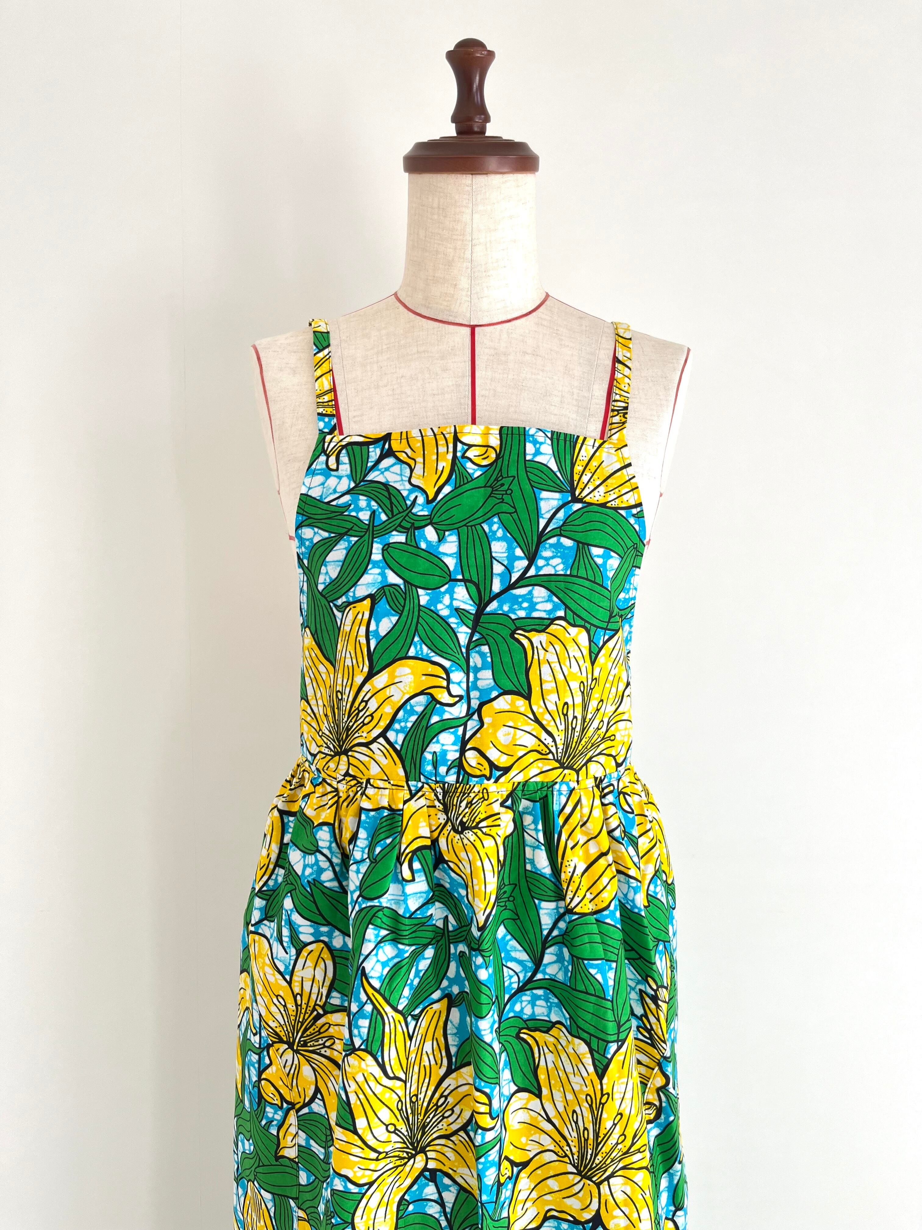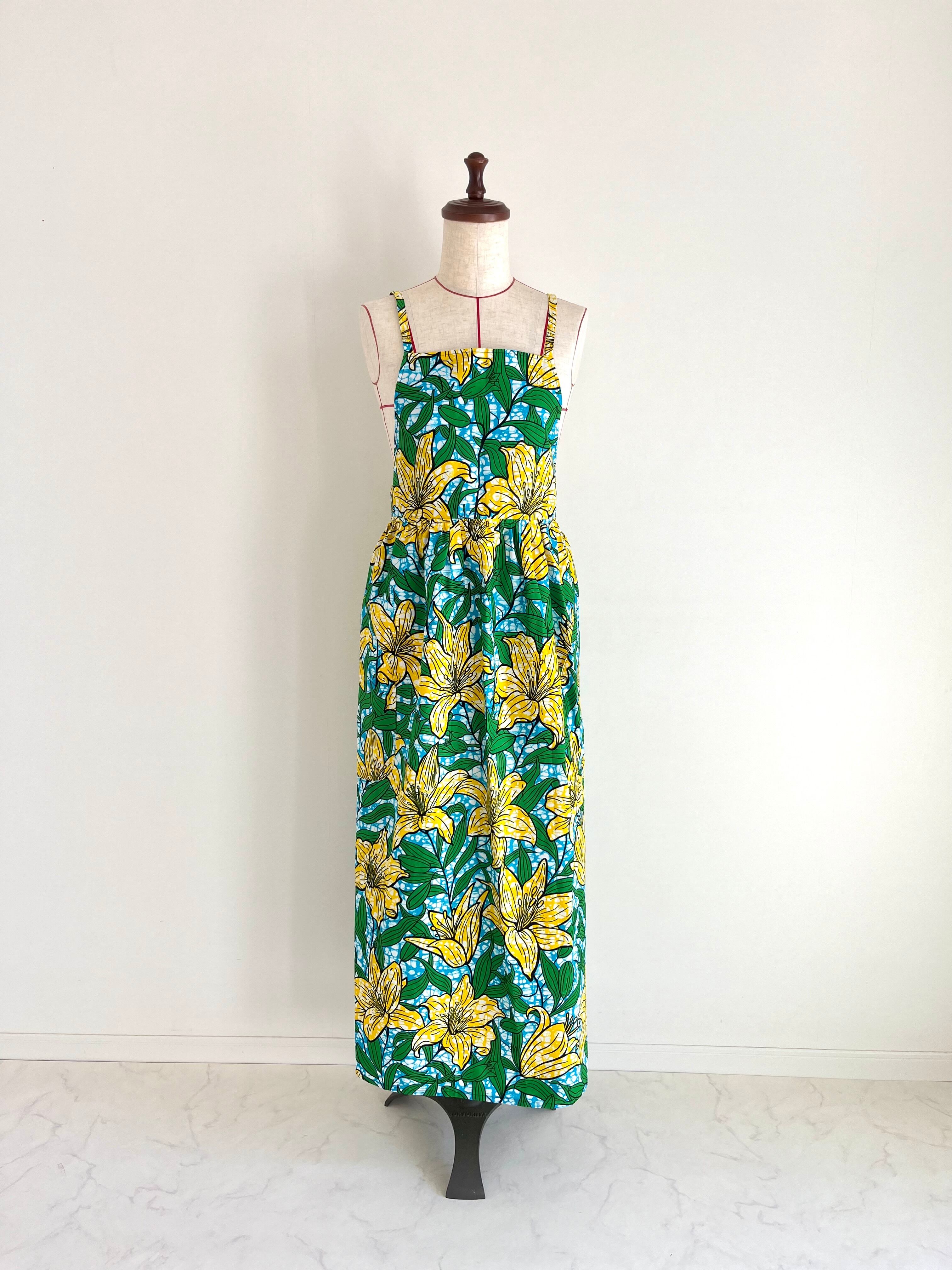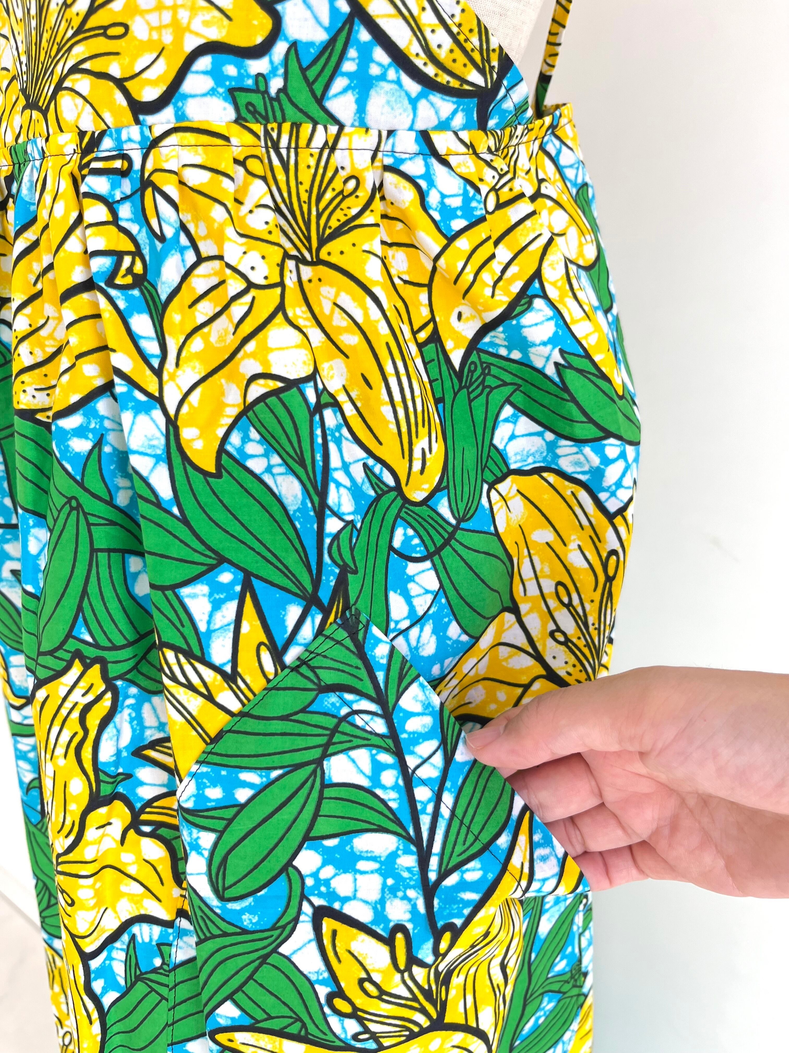 色彩豊かで個性的なアフリカ布で作ったエプロンです。