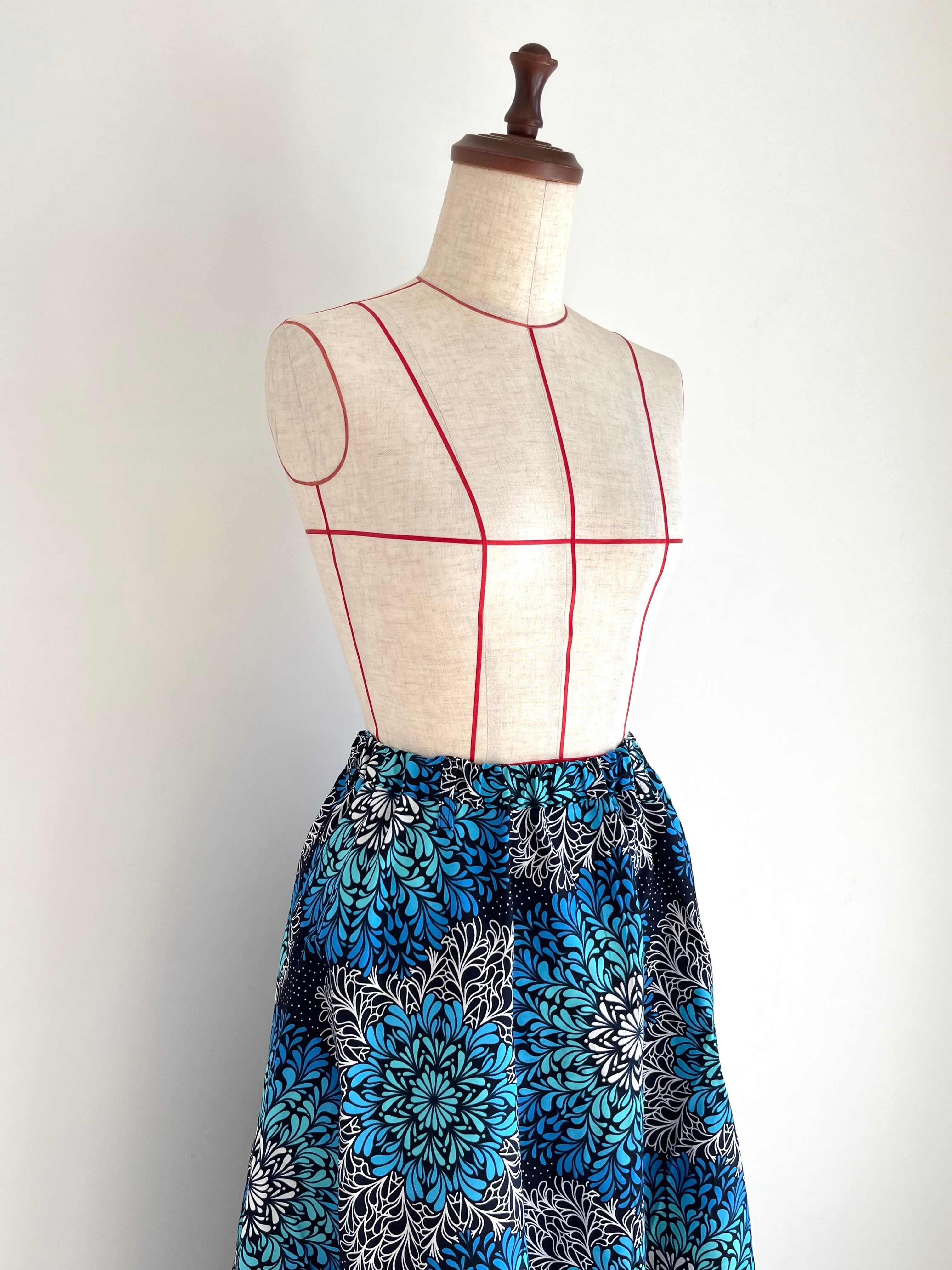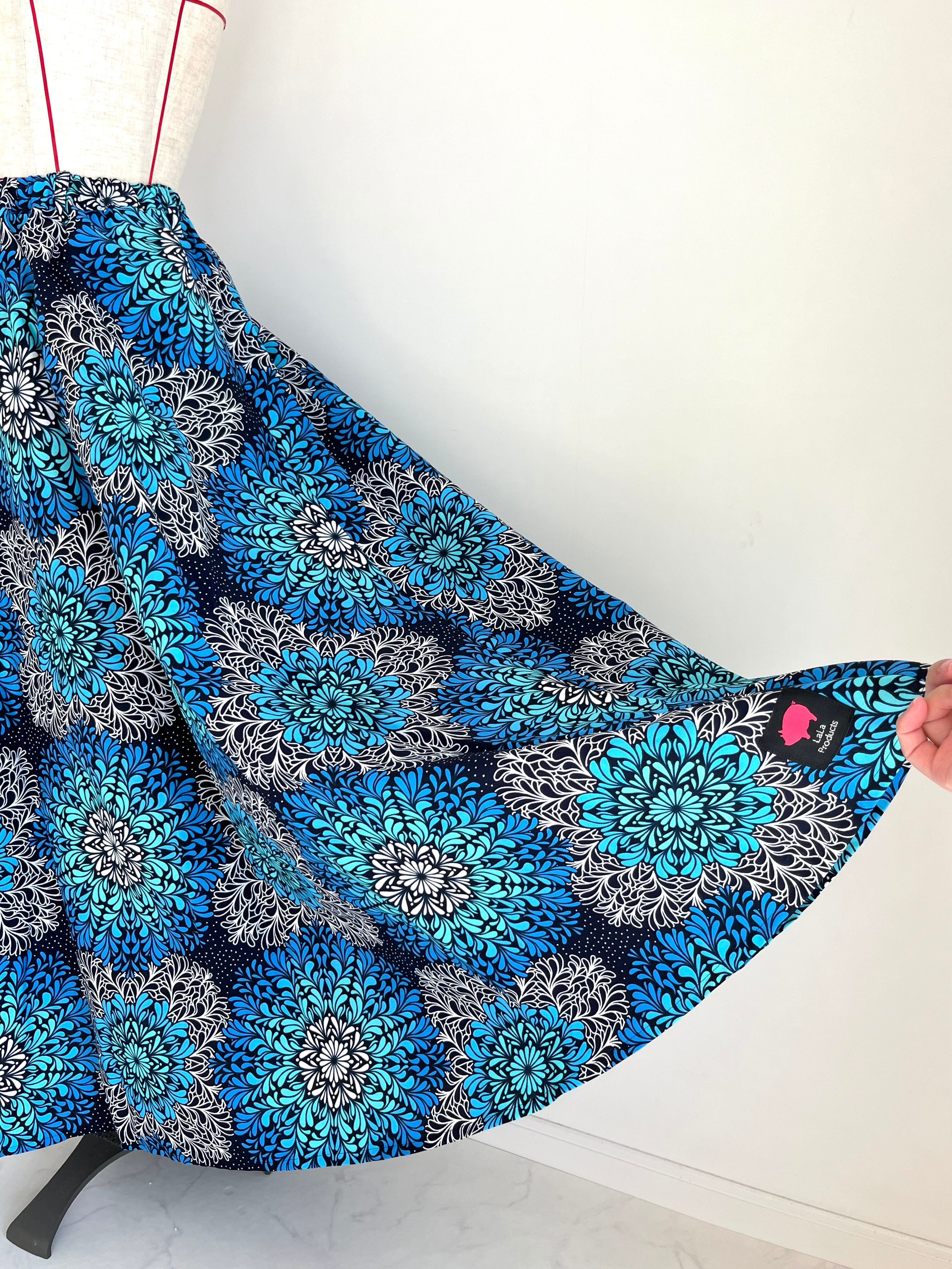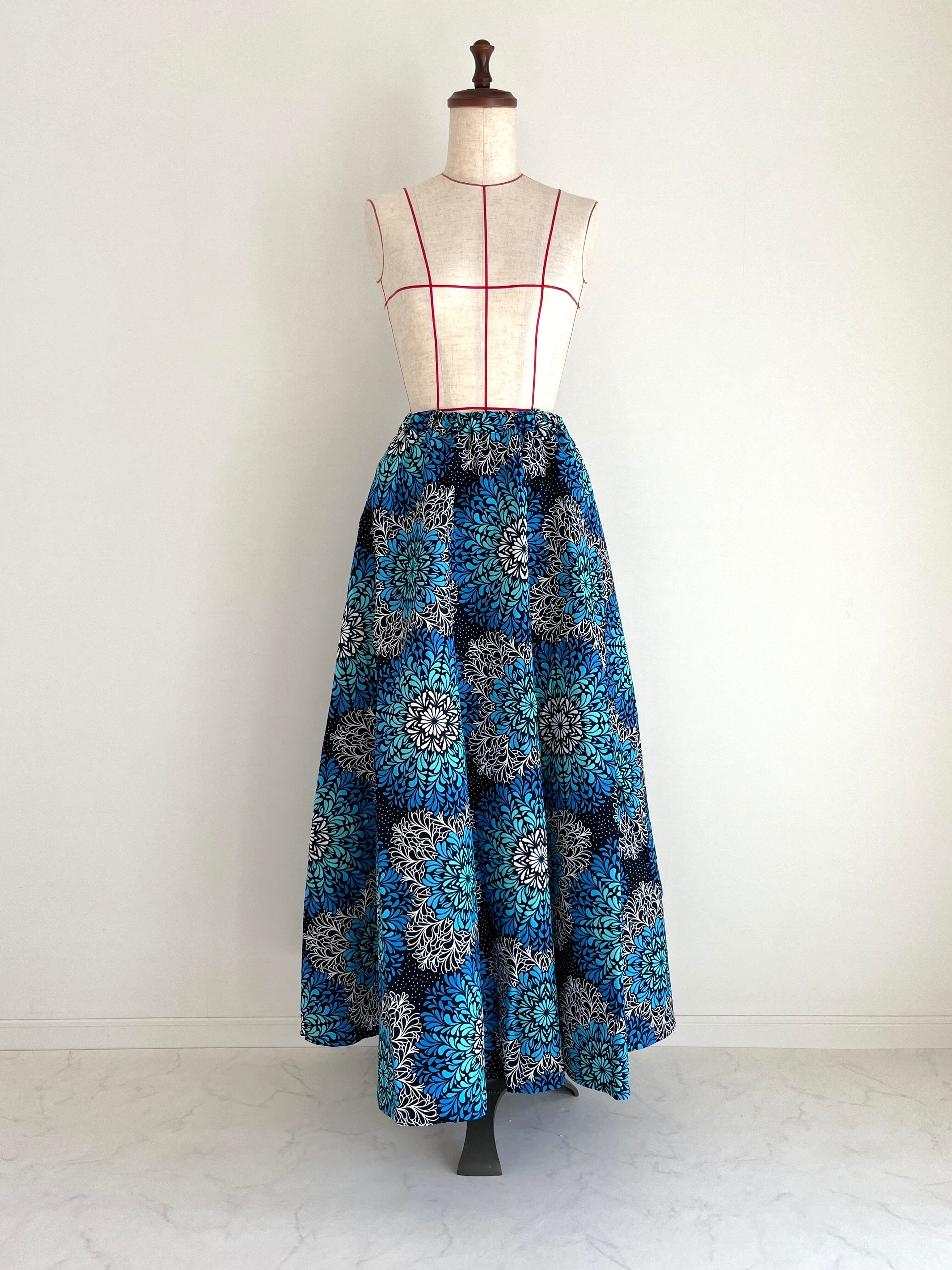 アフリカ布のフレアロングスカート(裏地付)