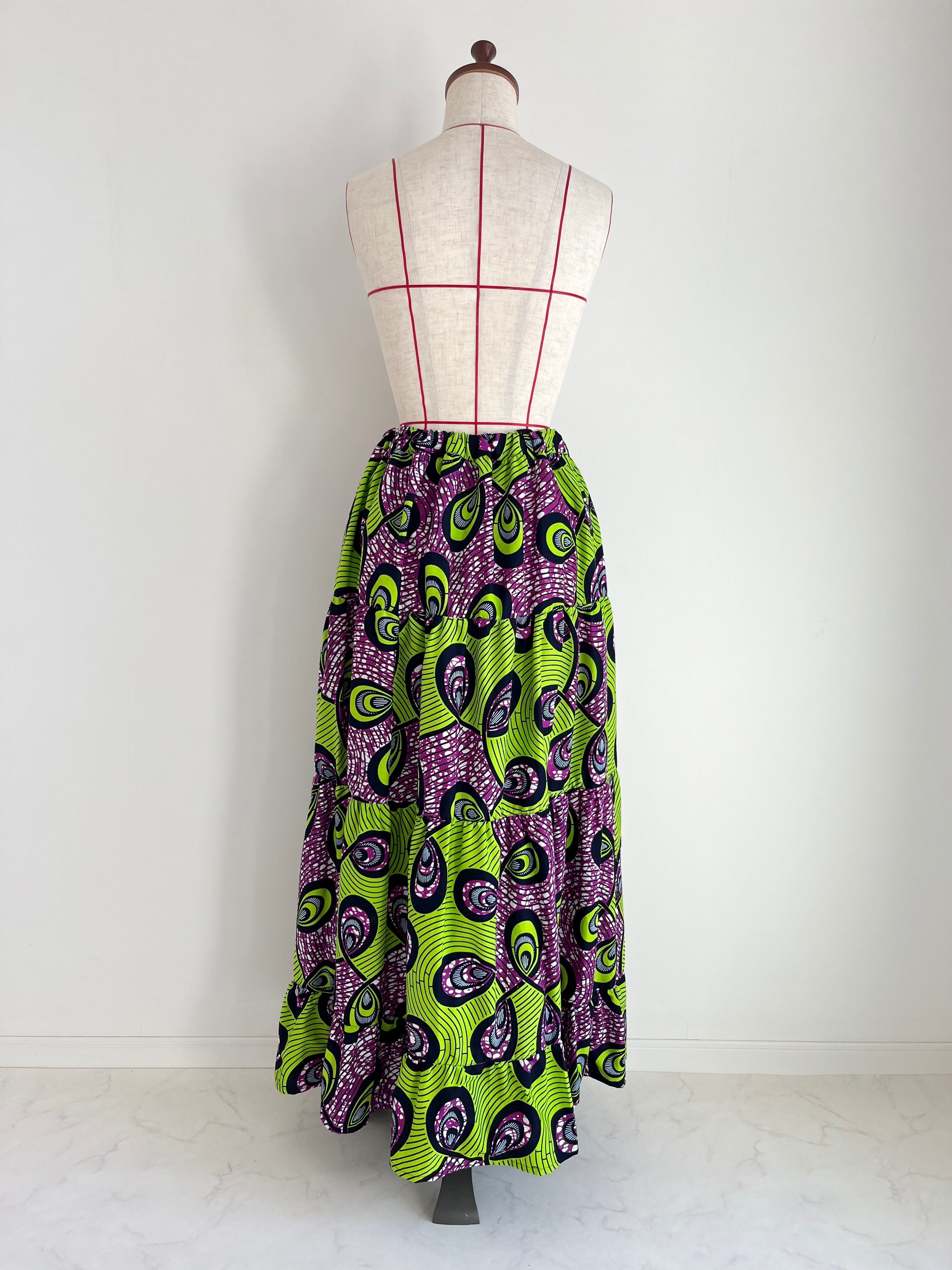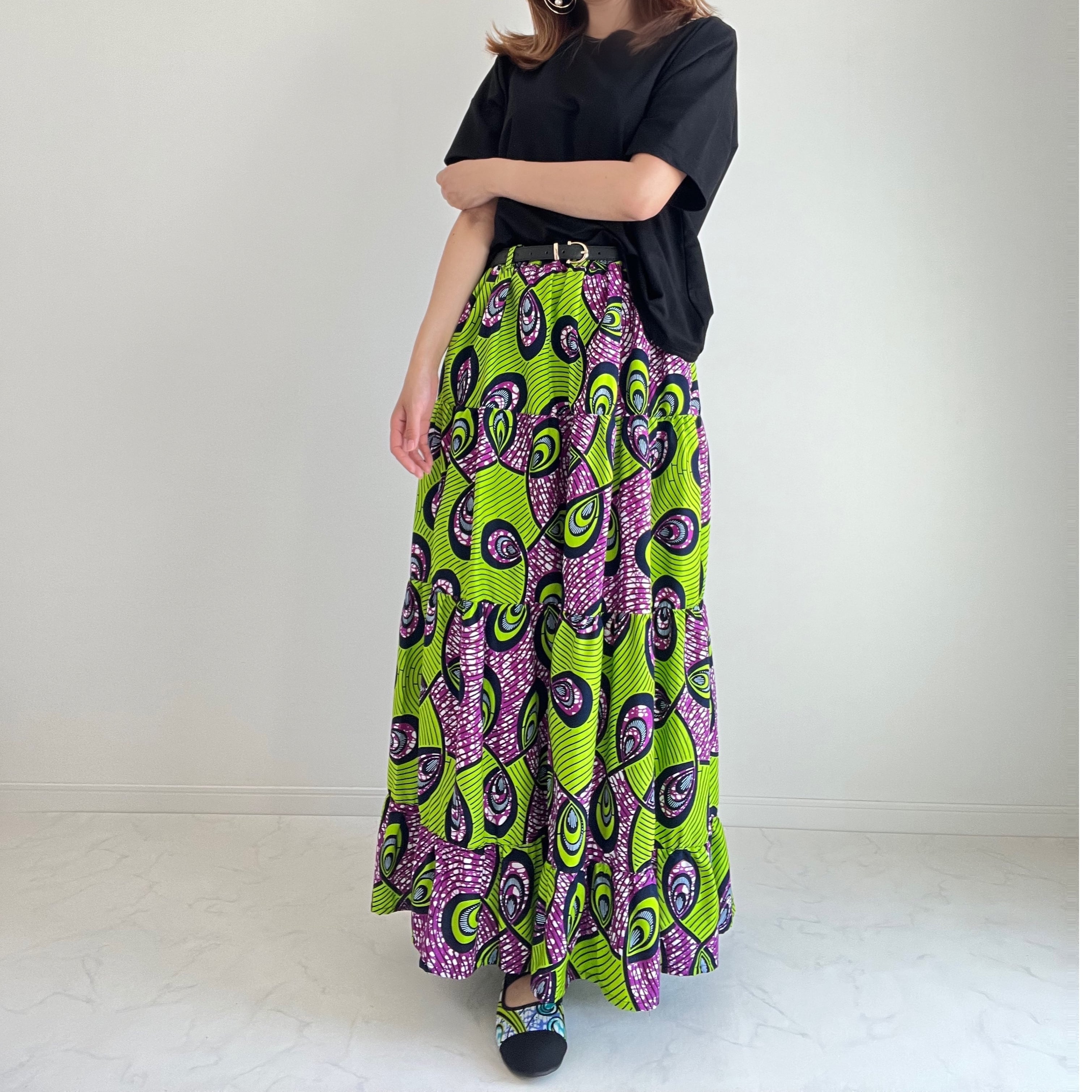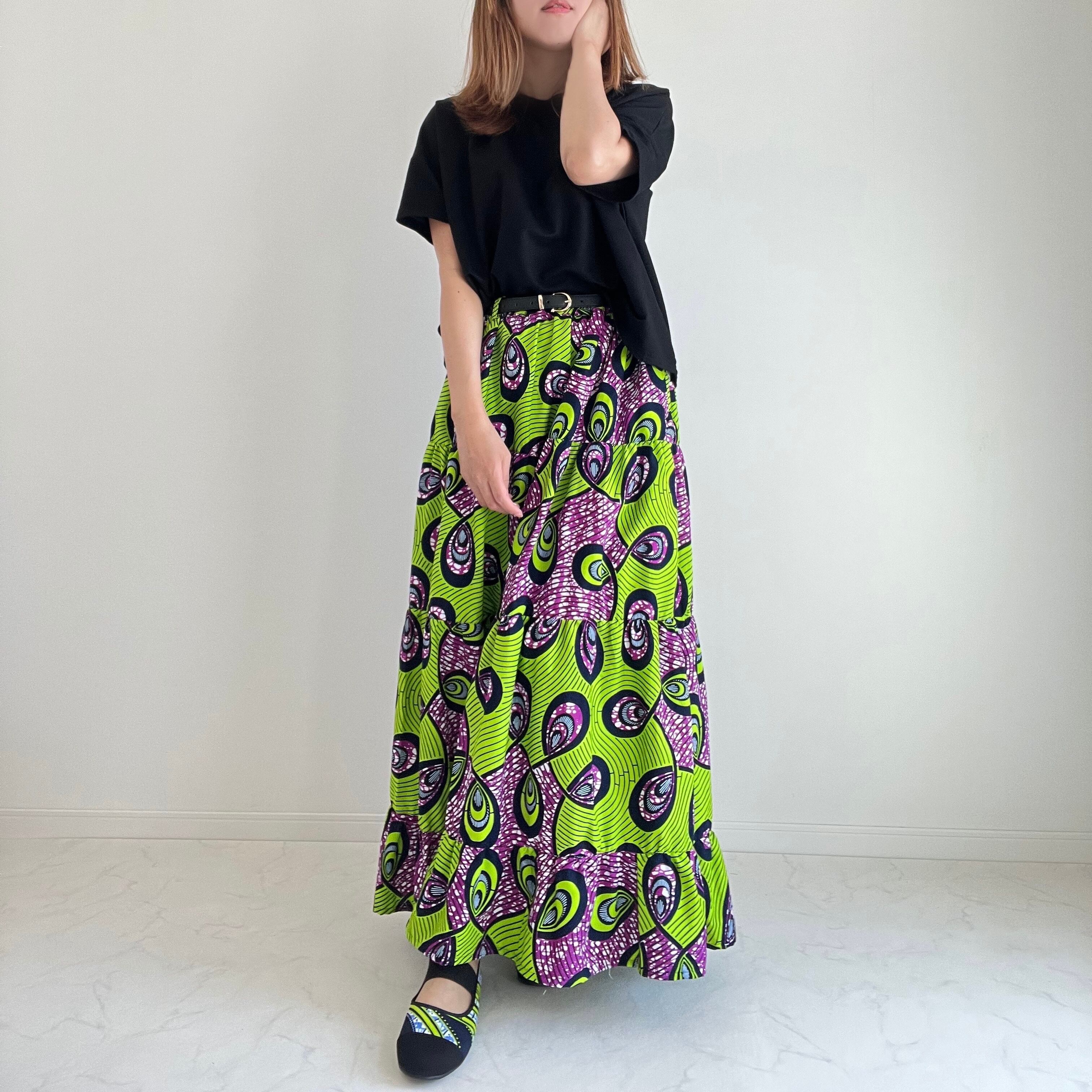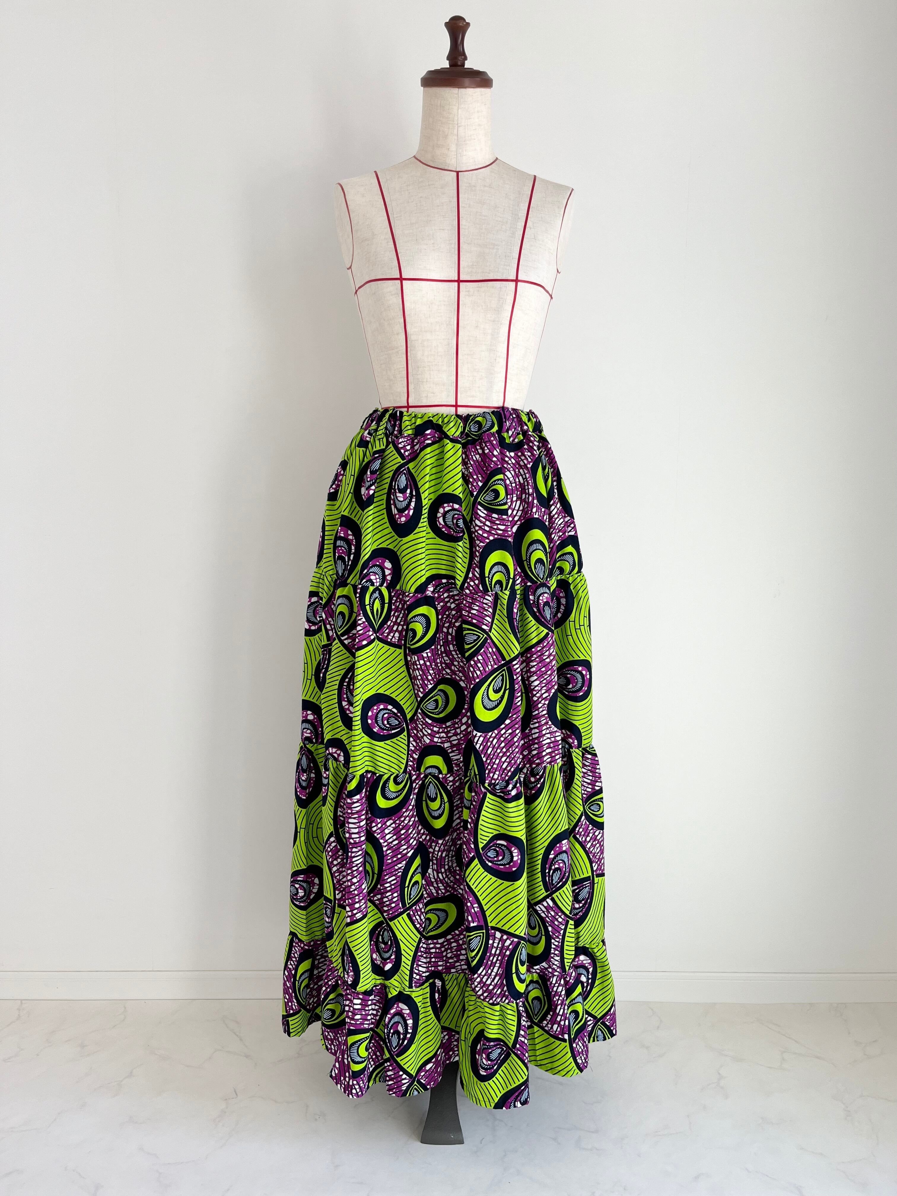 アフリカ布のティアードスカートは